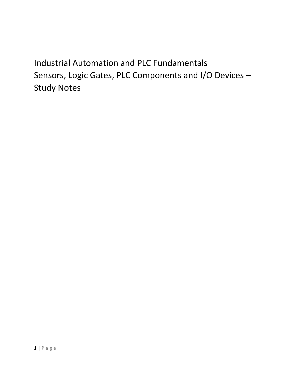 Electrical Engineering > Class Notes > Industrial Automation and PLC Fundamentals Sensors, Logic Gates, PLC Components and I/O Devices – Study Notes