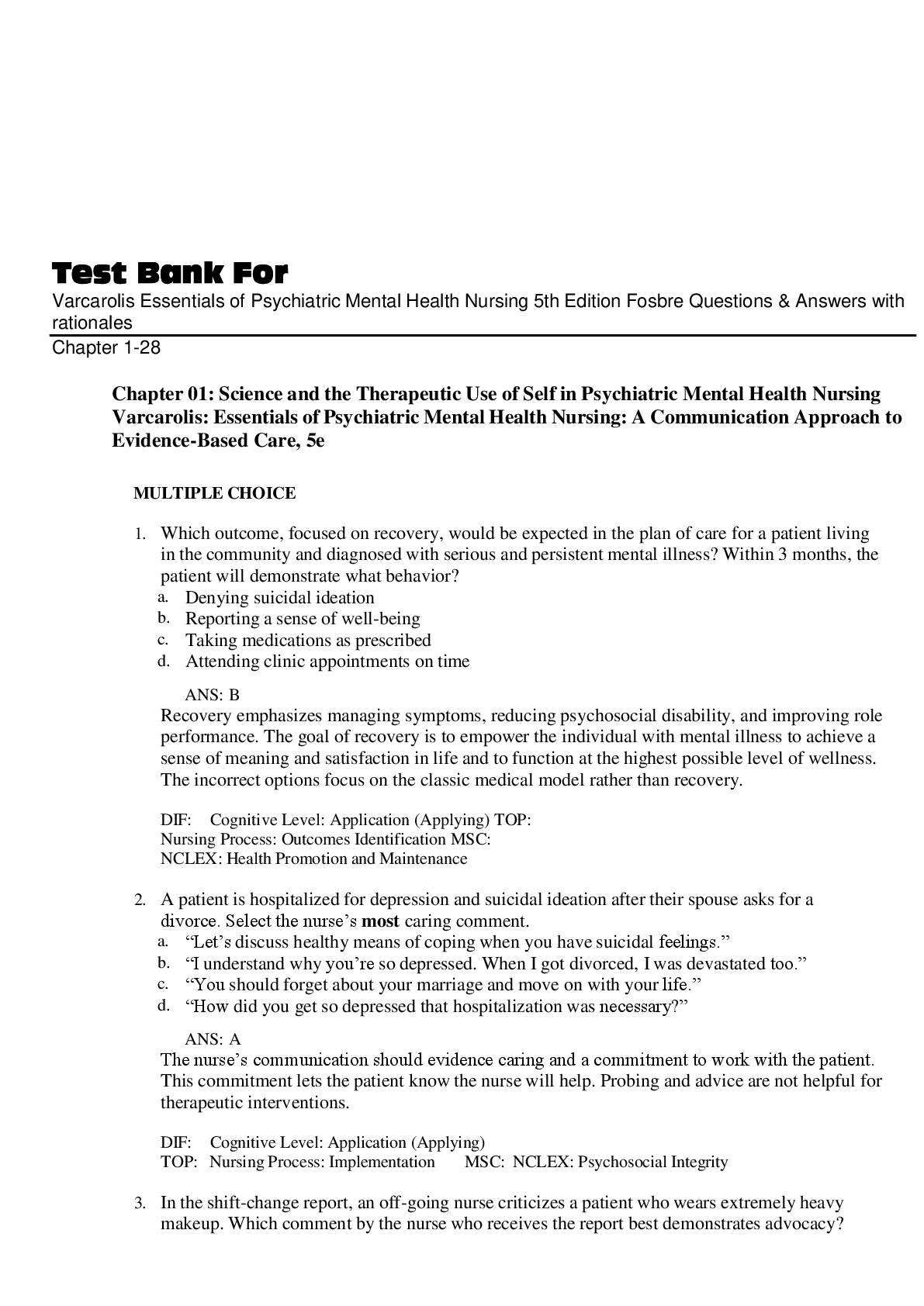 Health Care > TEST BANKS > Complete Test Bank Varcarolis’ Essentials of Psychiatric Mental Health Nursing (5th Edition)”