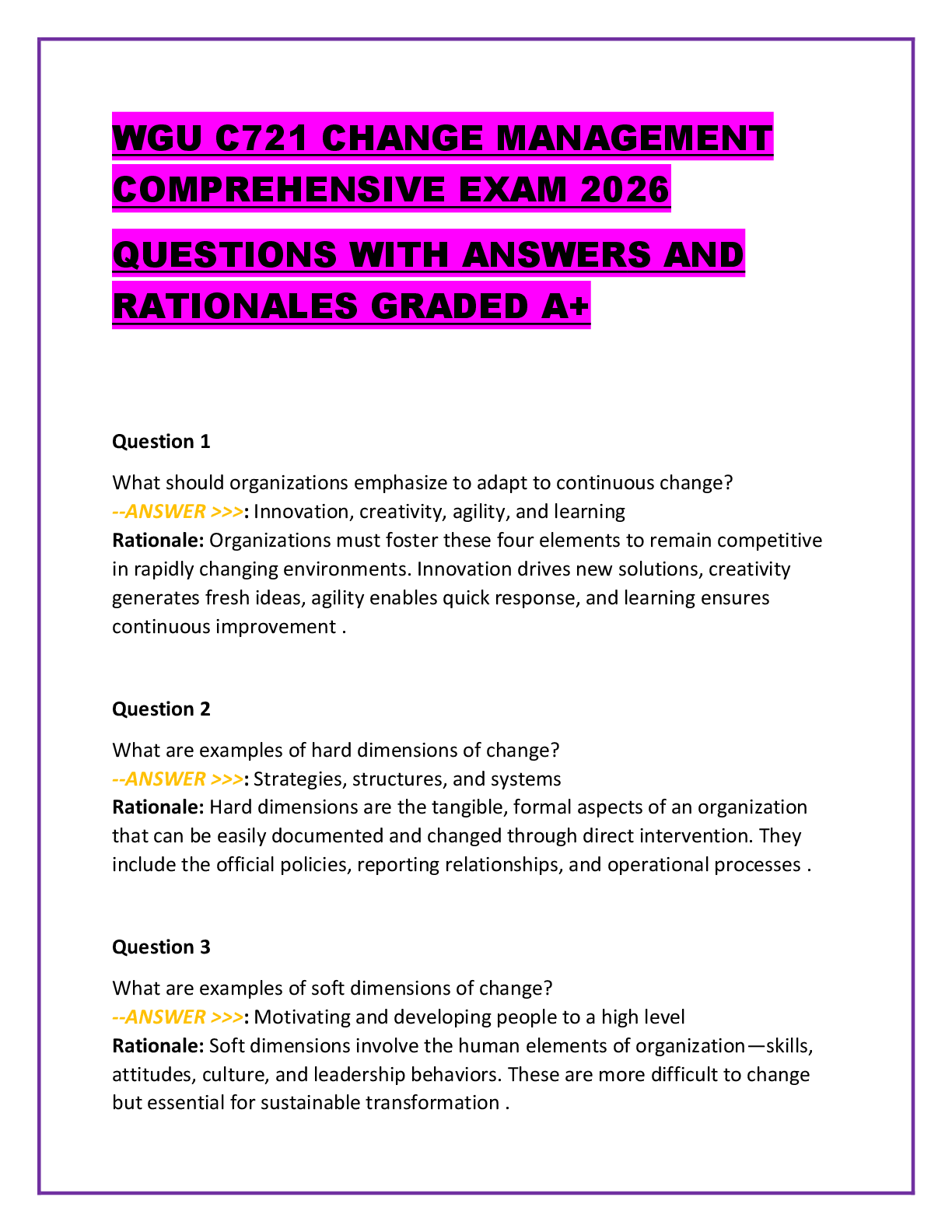 *NURSING > WGU TASKs > WGU C721 CHANGE MANAGEMENT COMPREHENSIVE EXAM 2026 QUESTIONS WITH ANSWERS AND RATIONALES GRADED A+