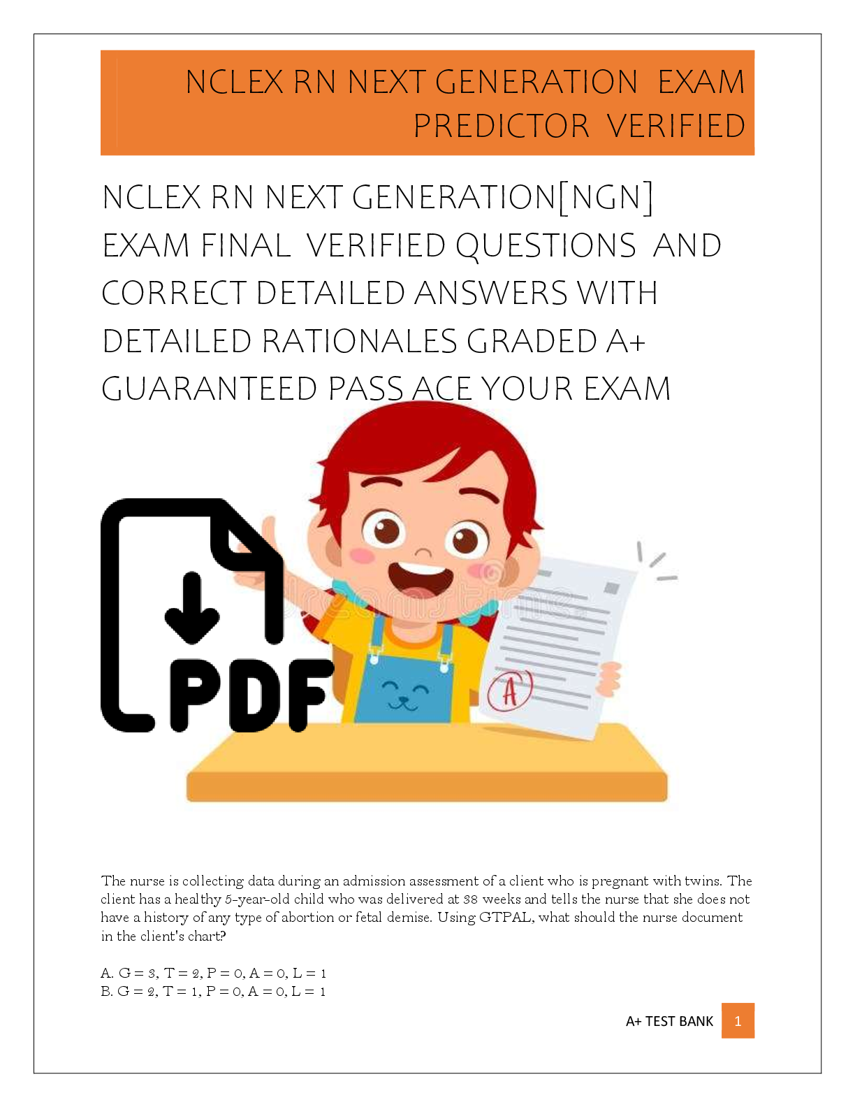 *NURSING > EXAM > NCLEX RN NEXT GENERATION EXAM 1 PREDICTOR VERIFIED QUESTIONS AND CORRECT DETAILED ANSWERS WITH DETAILED RATIONALES GRADED A+ GUARANTEED PASS ACE YR EXAM