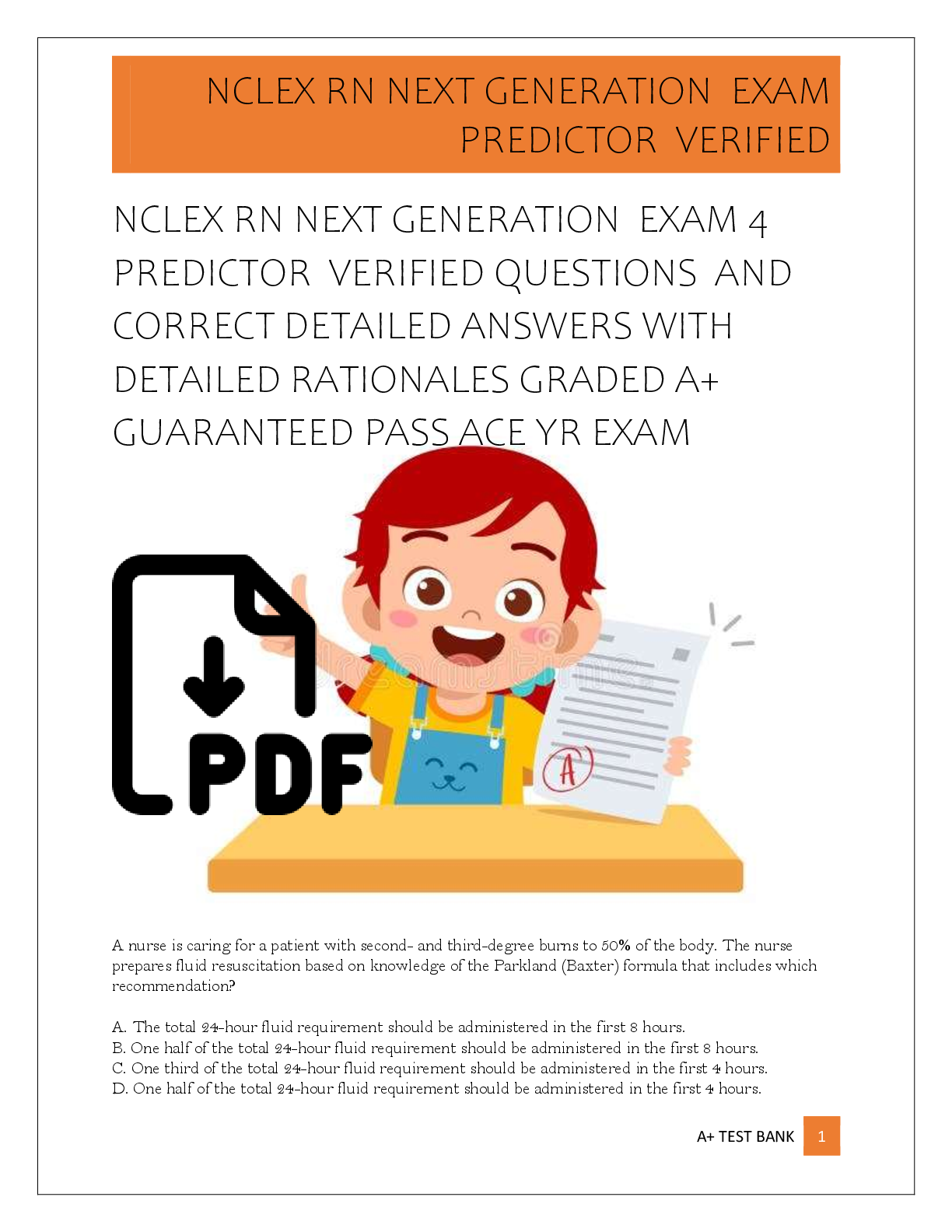 *NURSING > EXAM > NCLEX RN NEXT GENERATION EXAM 4 PREDICTOR VERIFIED QUESTIONS AND CORRECT DETAILED ANSWERS WITH DETAILED RATIONALES GRADED A+ GUARANTEED PASS ACE YR EXAM