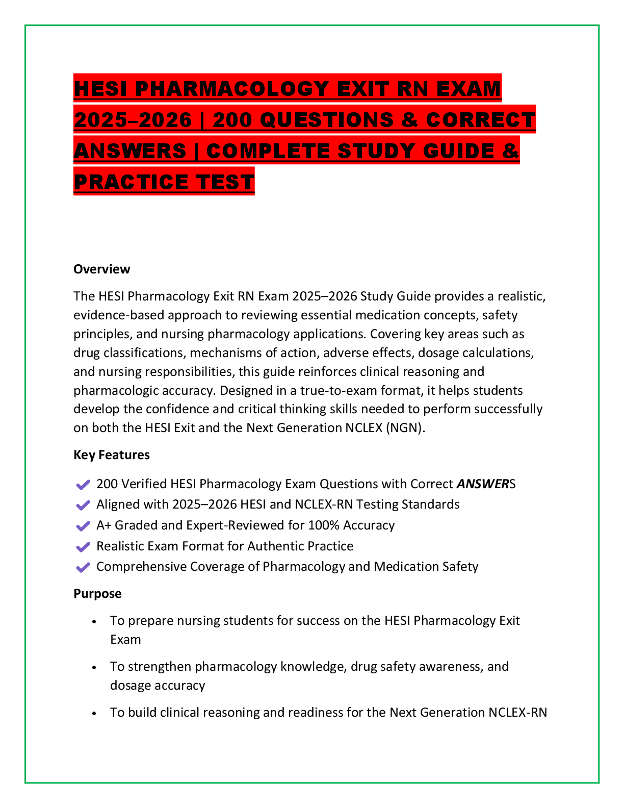 *NURSING > HESI > HESI PHARMACOLOGY EXIT RN EXAM 2025–2026 | 200 QUESTIONS & CORRECT ANSWERS | COMPLETE STUDY GUIDE & PRACTICE TEST