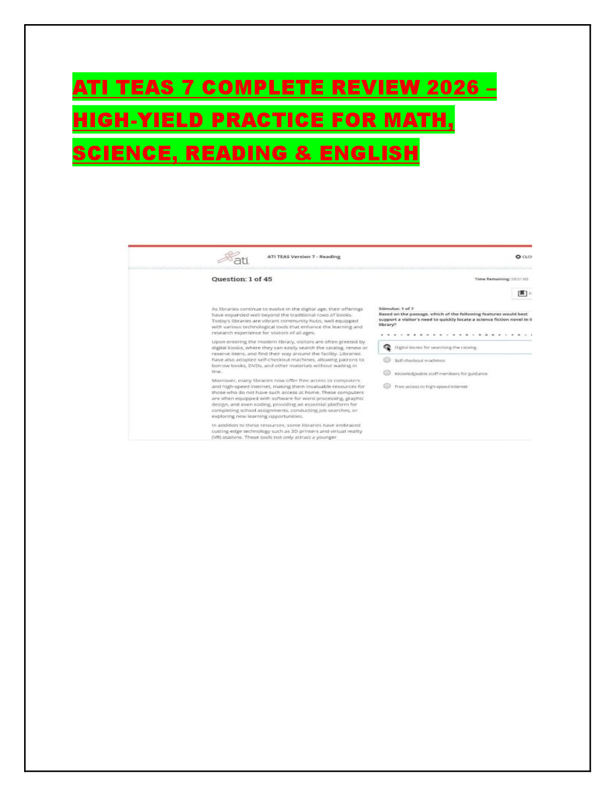 *NURSING > ATI > ATI TEAS 7 COMPLETE REVIEW 2026 – HIGH-YIELD PRACTICE FOR MATH, SCIENCE, READING & ENGLISH