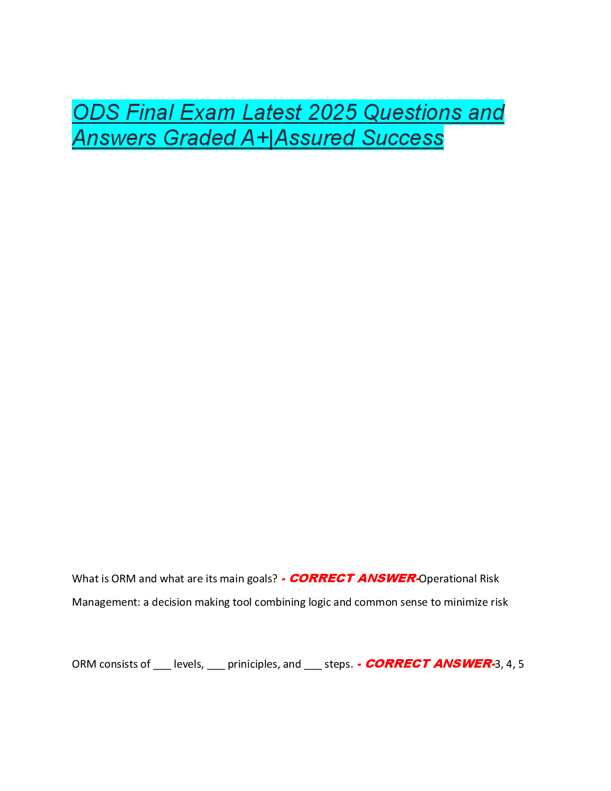 *NURSING > EXAM > ODS Final Exam Latest 2025 Questions and Answers Graded A+|Assured Success