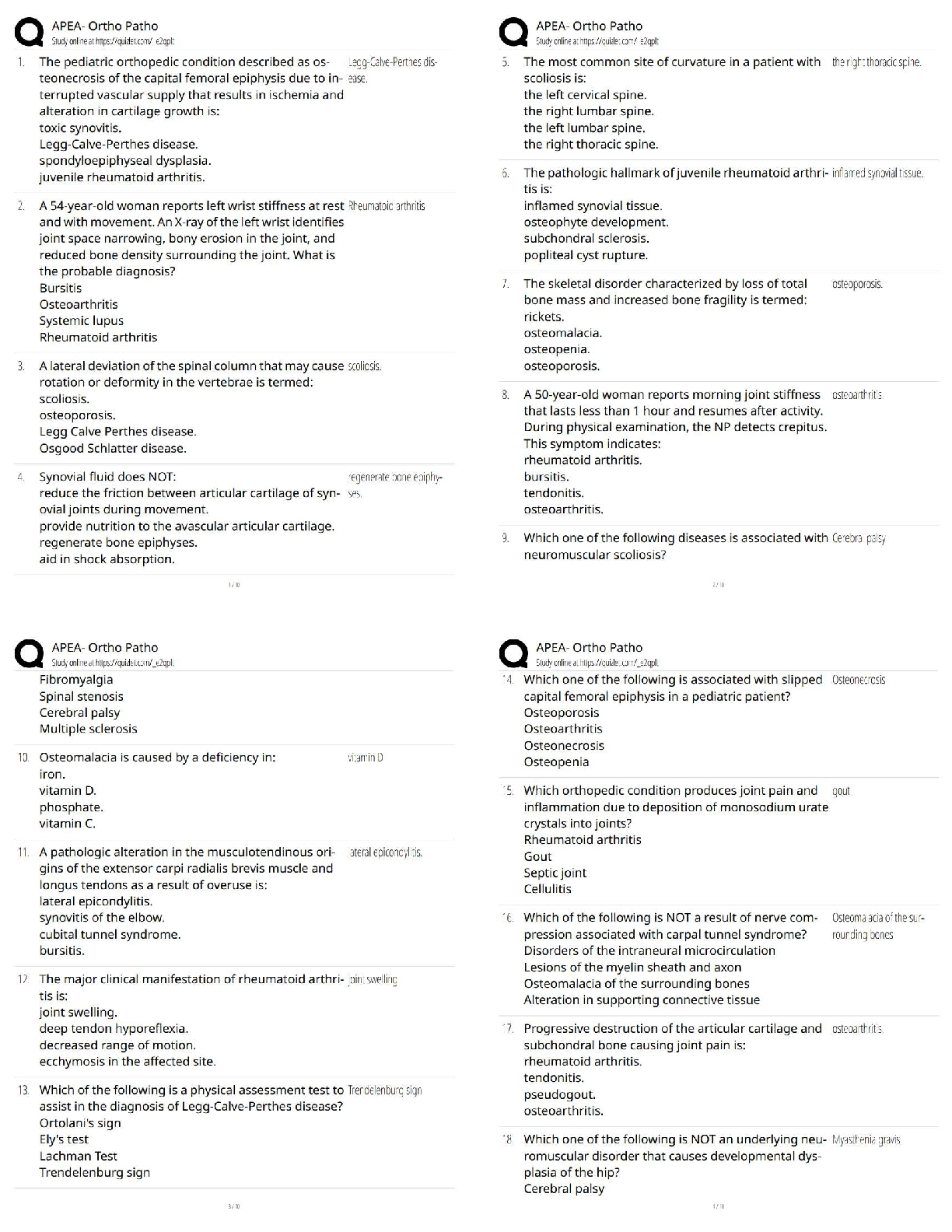 *NURSING > QUESTIONS & ANSWERS > APEA – Ortho Patho / Score 100% / New Version / 2025 Update – Study Guide & Test Bank