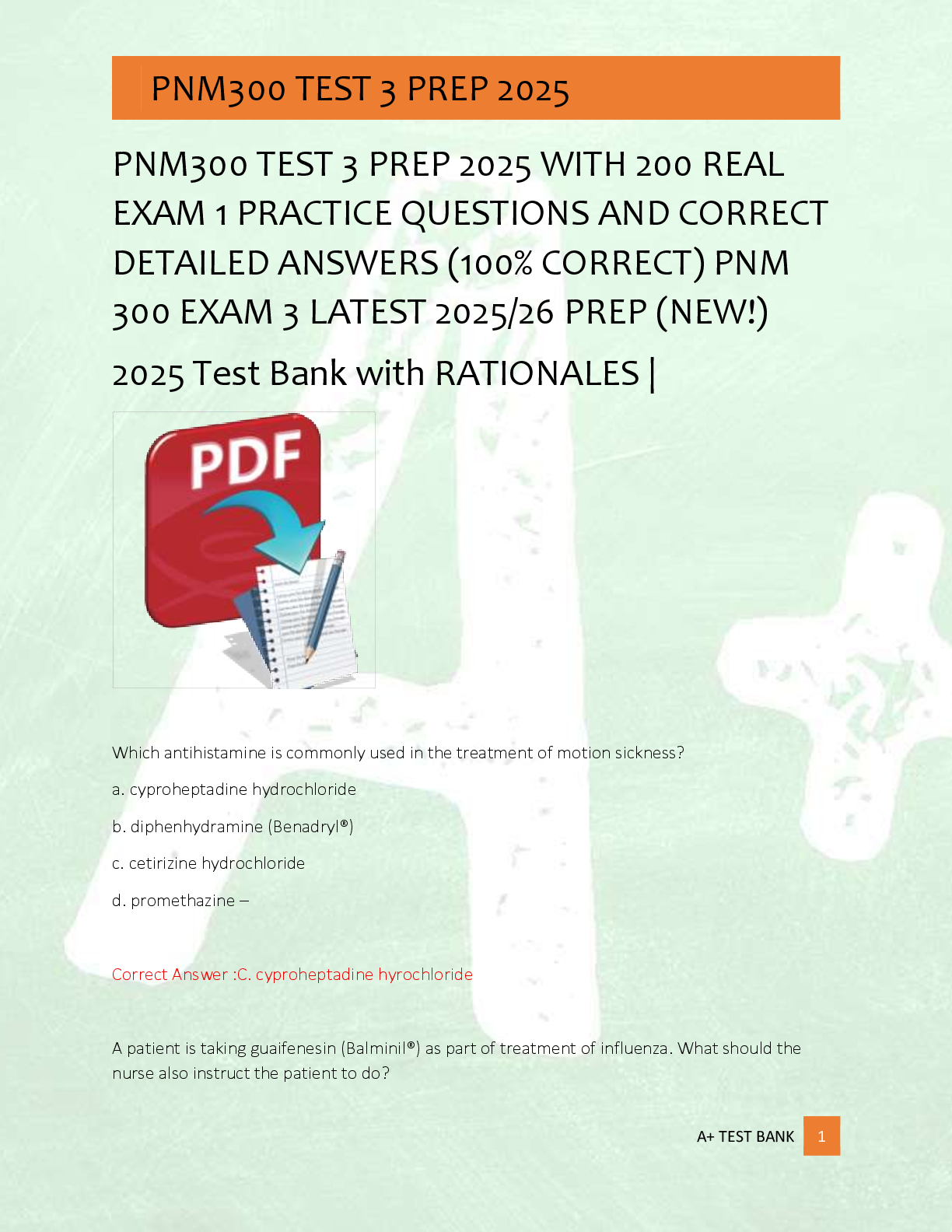 *NURSING > EXAM > PNM300 TEST 3 PREP 2025 WITH 200 REAL EXAM 1 PRACTICE QUESTIONS AND CORRECT DETAILED ANSWERS (100% CORRECT) PNM 300 EXAM 3 LATEST 2025/26 PREP (NEW!) 2025 Test Bank with RATIONALES |