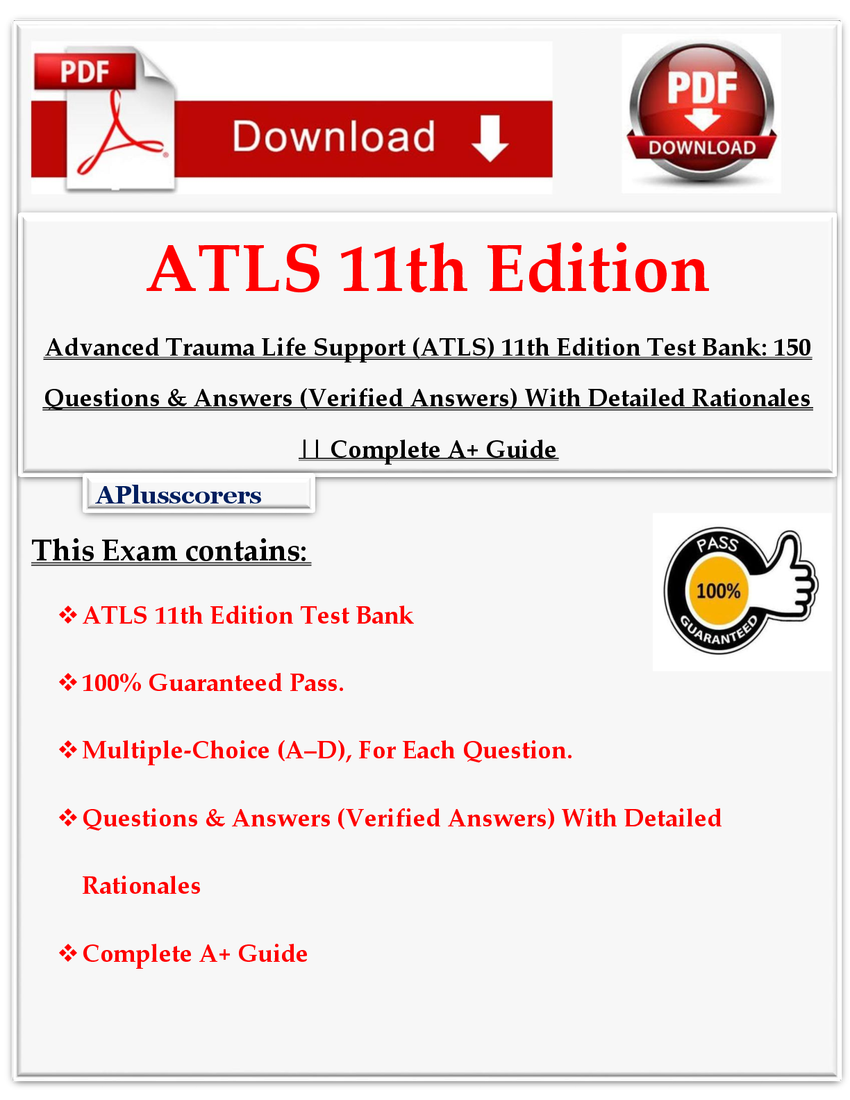 *NURSING > Advanced Trauma Life Support (ATLS) > Advanced Trauma Life Support (ATLS) 11th Edition Test Bank: 150 Questions & Answers (Verified Answers) With Detailed Rationales