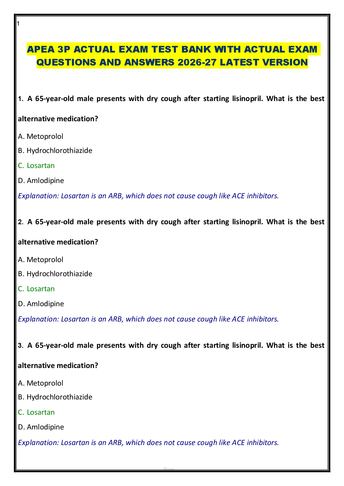 APEA > APEA CERTIFICATION > APEA 3P ACTUAL EXAM TEST BANK WITH ACTUAL EXAM QUESTIONS AND ANSWERS 2026-27 LATEST VERSION
