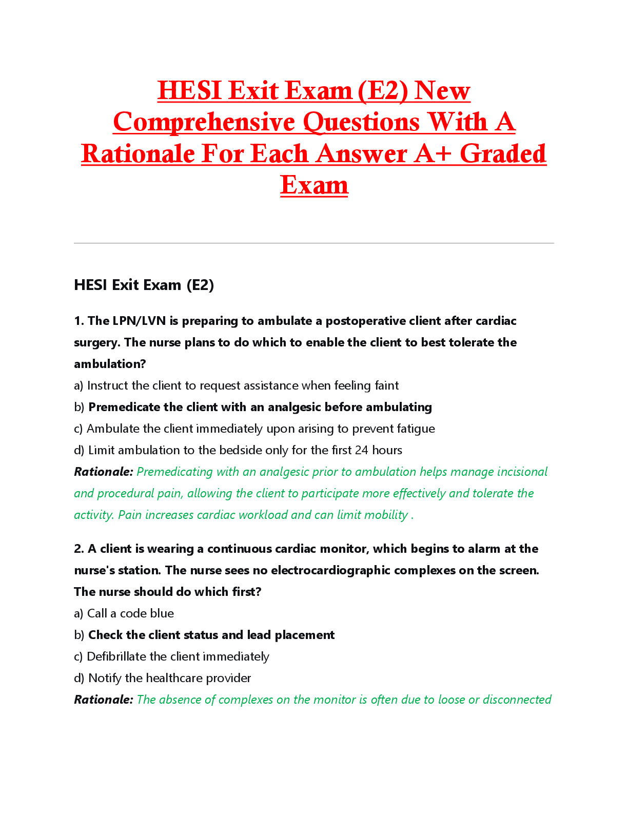 *NURSING > EXAM > HESI Exit Exam (E2) New Comprehensive Questions With A Rationale For Each Answer A+ Graded Exam