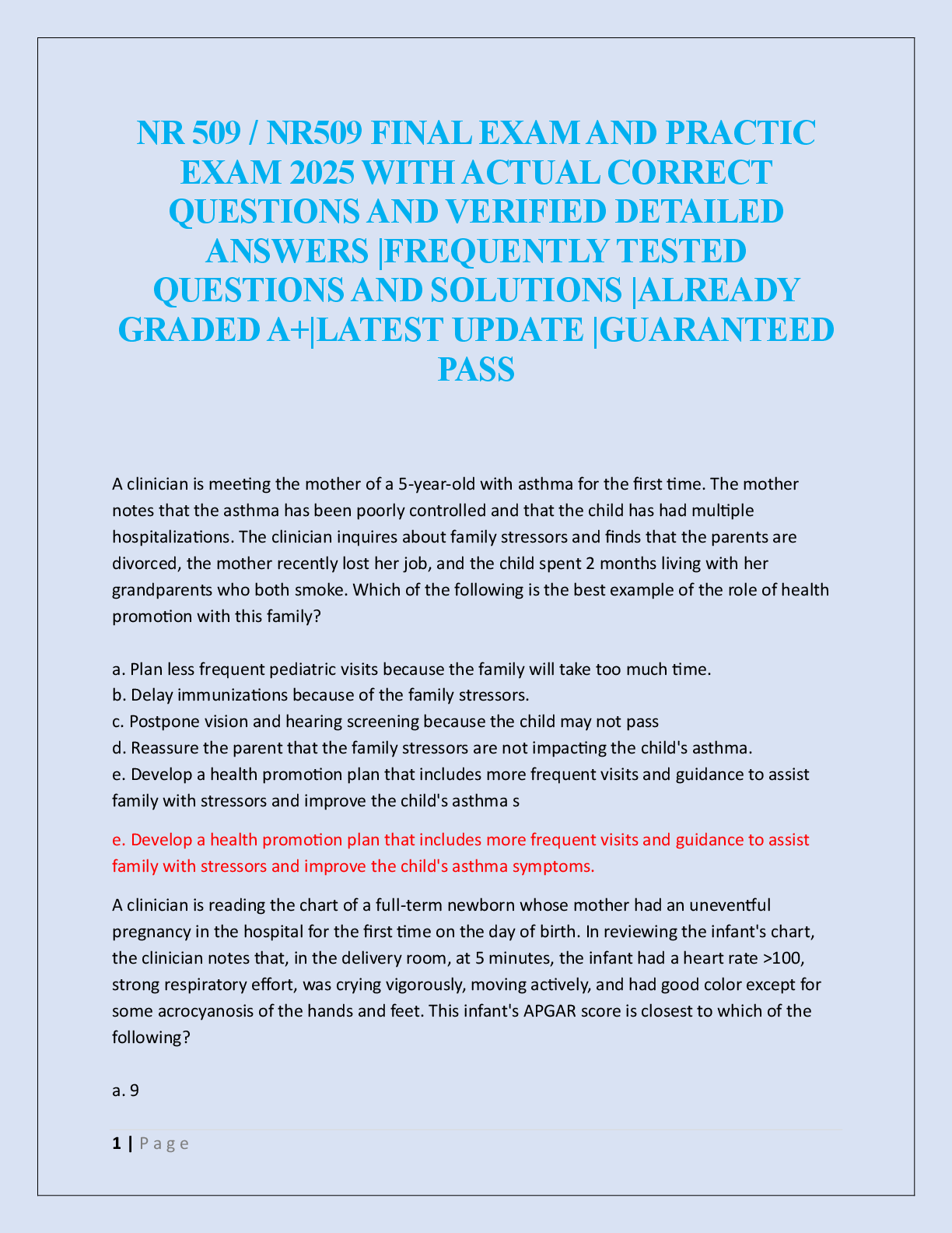 *NURSING > EXAM > NR 509 / NR509 FINAL EXAM AND PRACTIC EXAM 2025