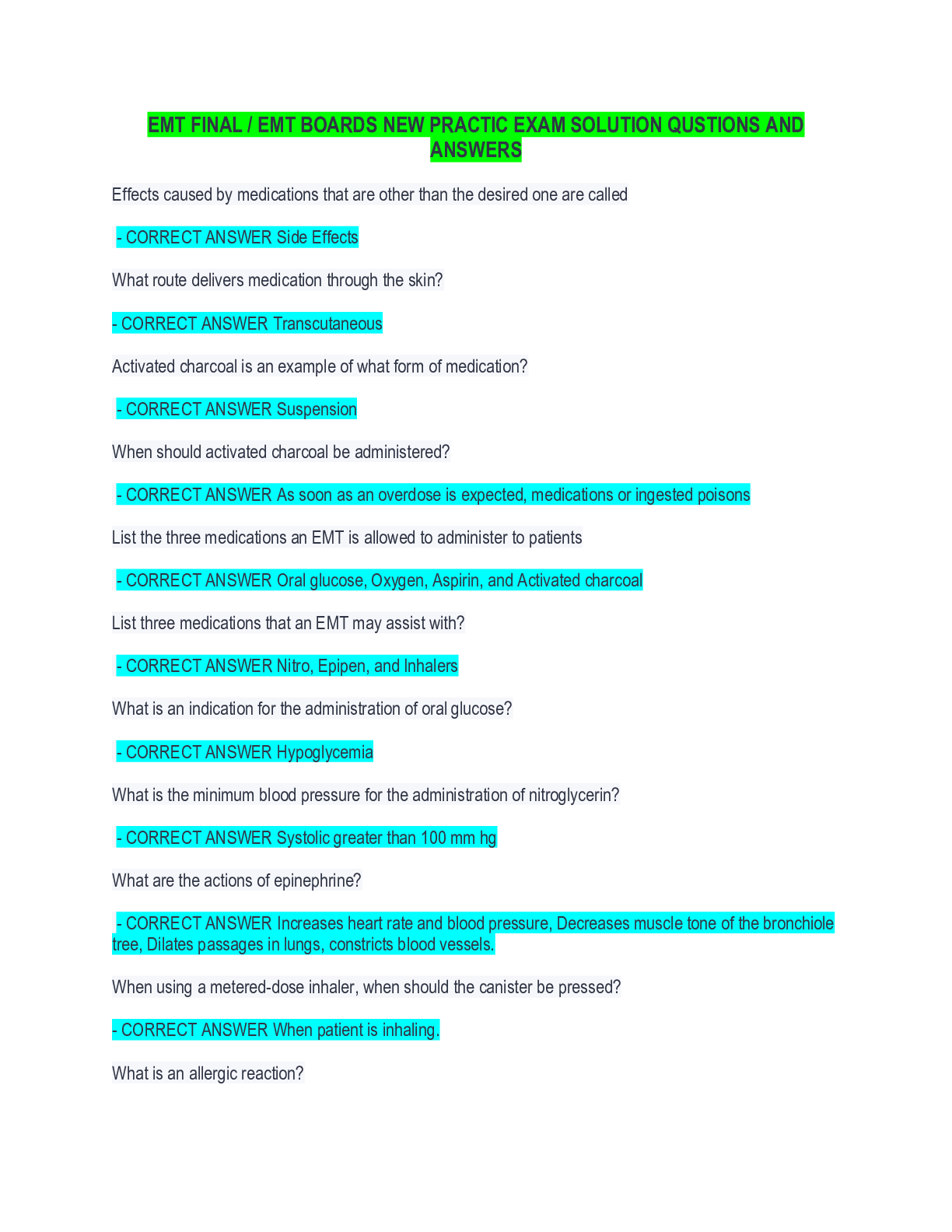 Education > EXAM > EMT FINAL EMT BOARDS NEW PRACTIC EXAM SOLUTION QUSTIONS AND ANSWERS