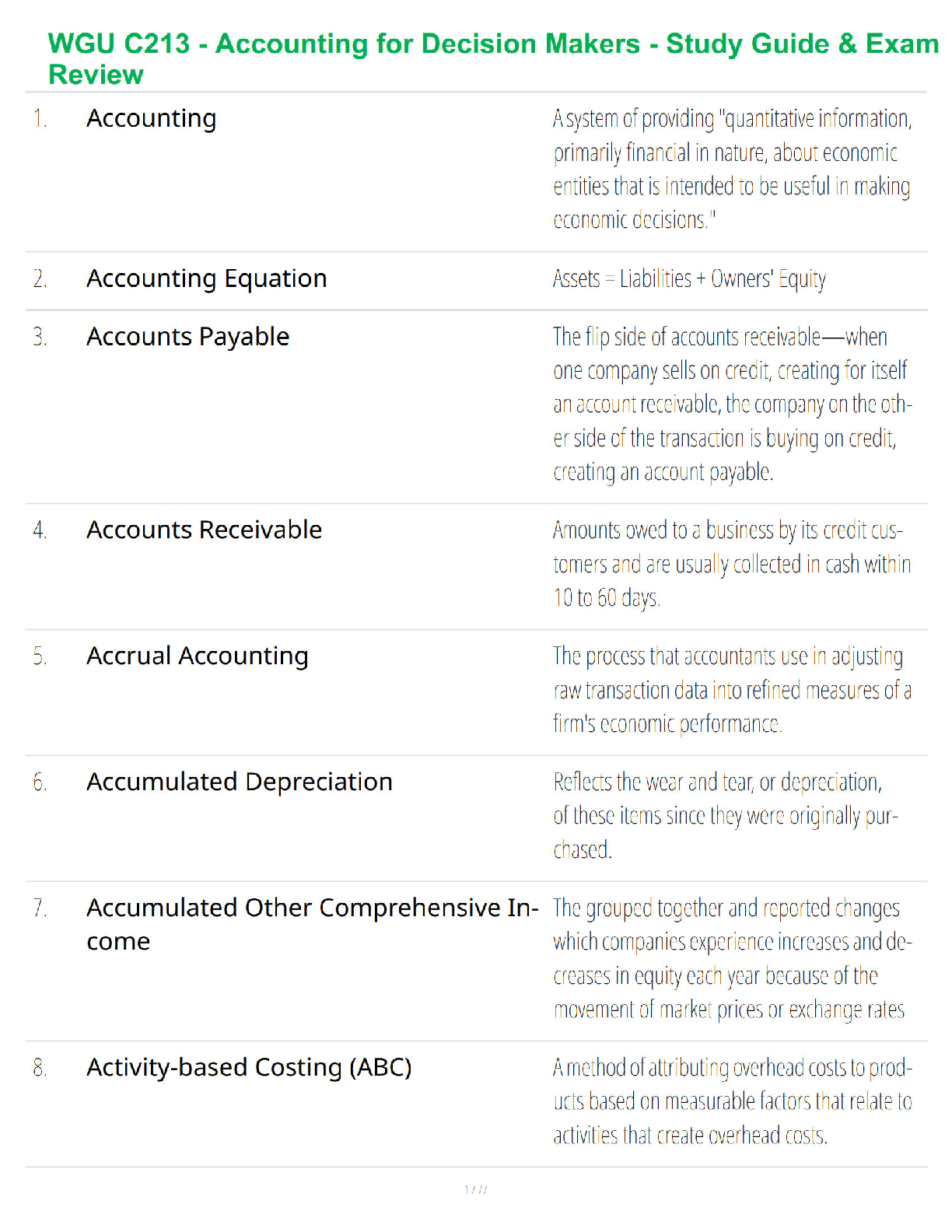 Accounting > QUESTIONS & ANSWERS > WGU C213 - Accounting for Decision Makers - Study Guide & Exam Review