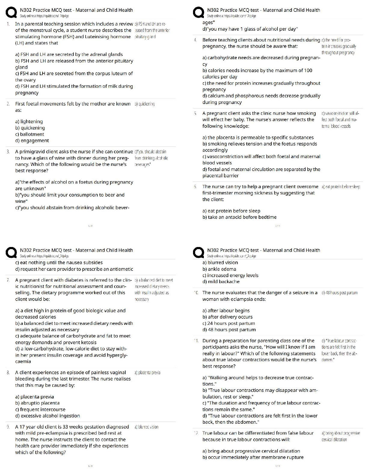 Maternal Child Nursing Care > QUESTIONS & ANSWERS > N302 Practice MCQ Test – Maternal and Child Health / Score 100% / New Version 2025 Update / Exam Prep with Rationales