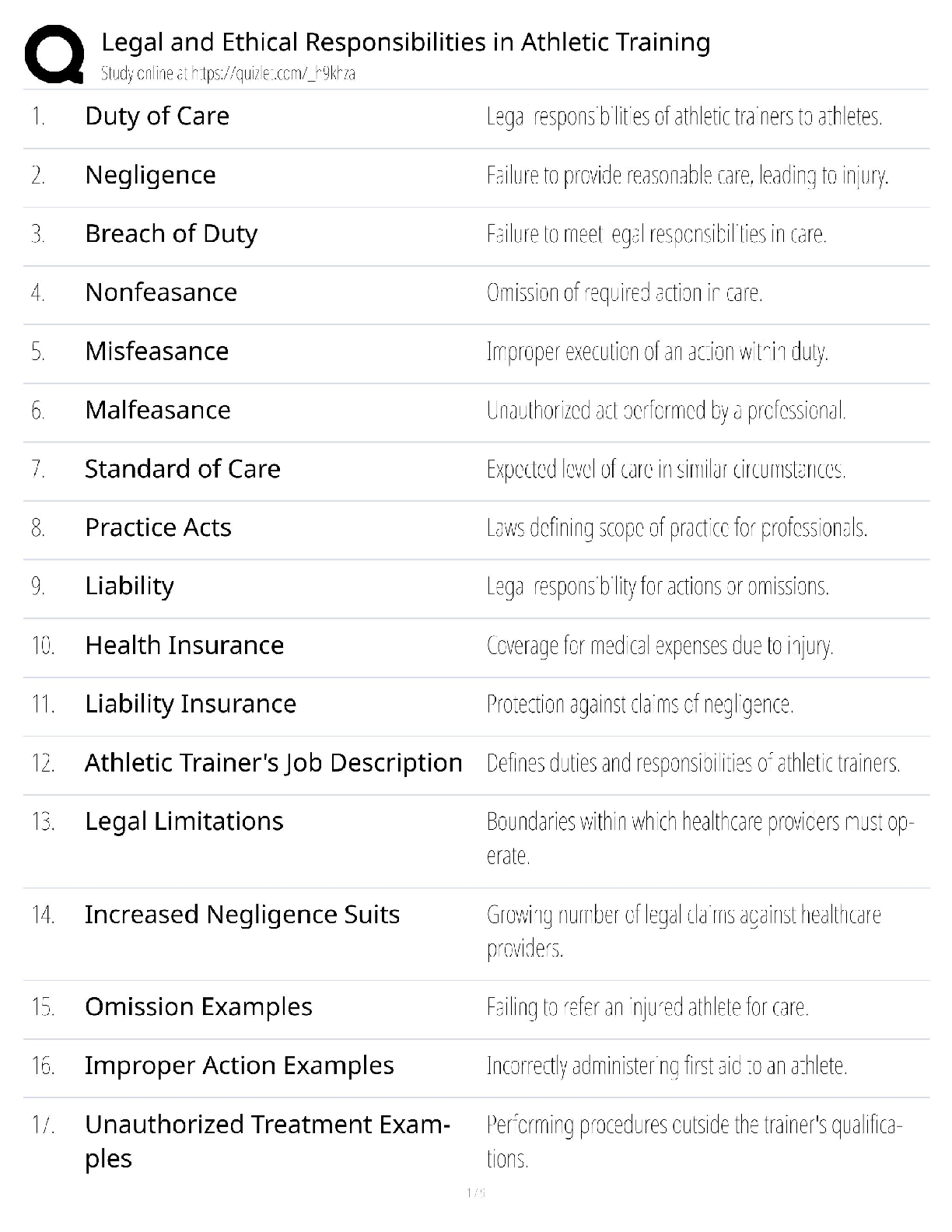 CERTIFIED FITNESS TRAINER > QUESTIONS & ANSWERS > Legal and Ethical Responsibilities / Athletic Training / Score 100% (Study Guide)