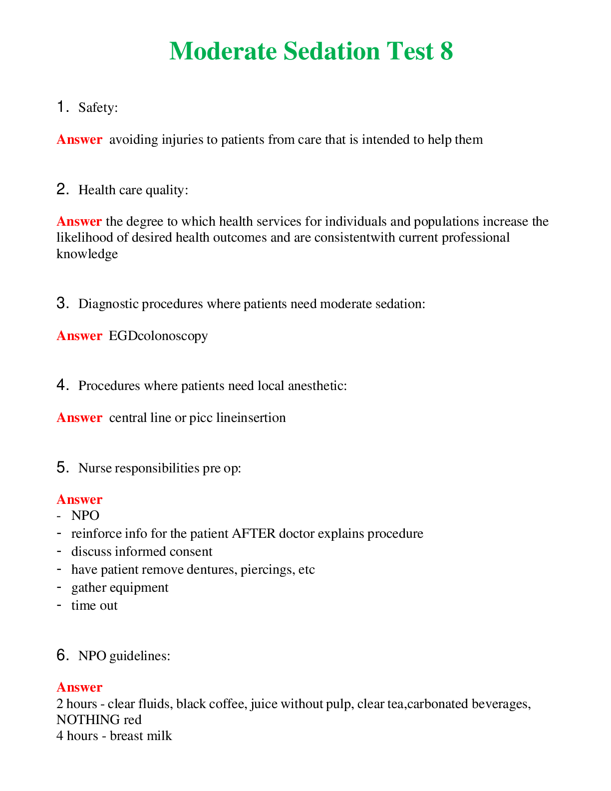 *NURSING > EXAM > Moderate Sedation Test 8 Questions With Complete Grade A+ Answers