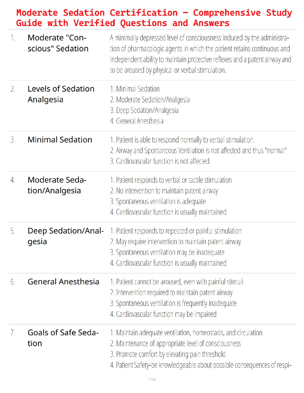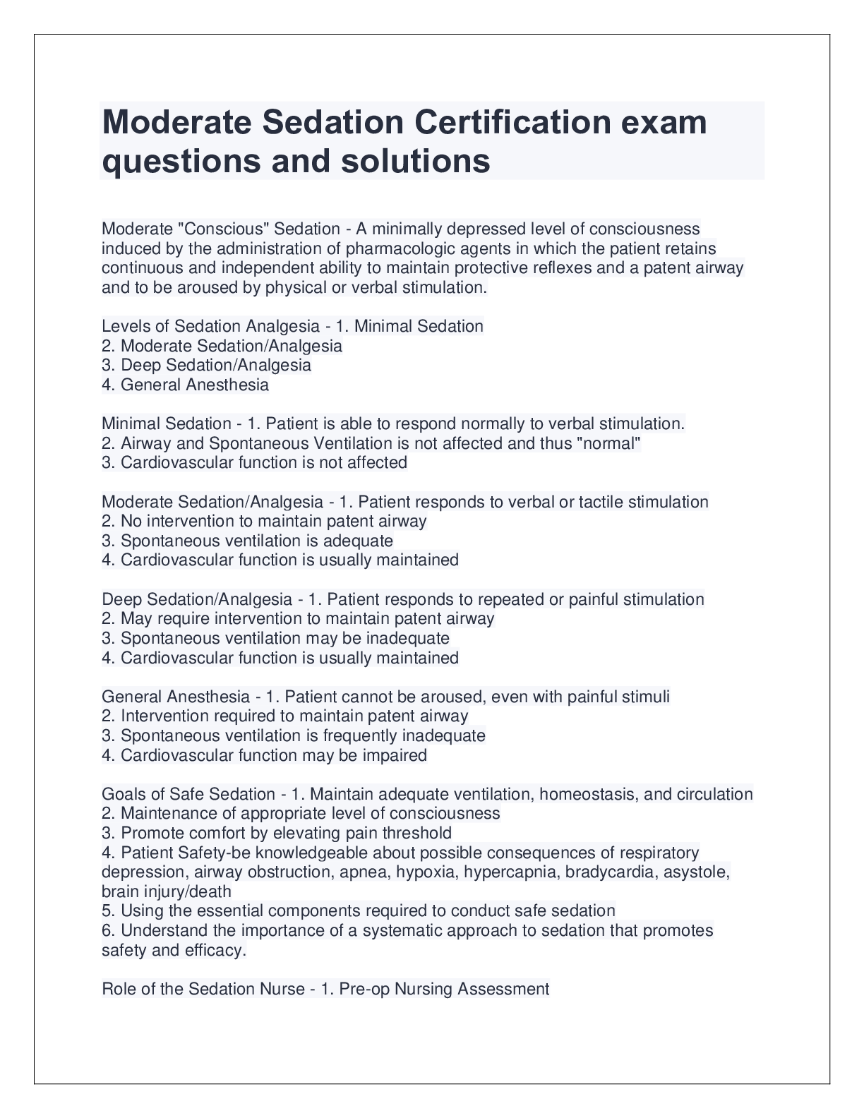 *NURSING > QUESTIONS & ANSWERS > Moderate Sedation Certification – Comprehensive Study Guide with Verified Questions and Answers