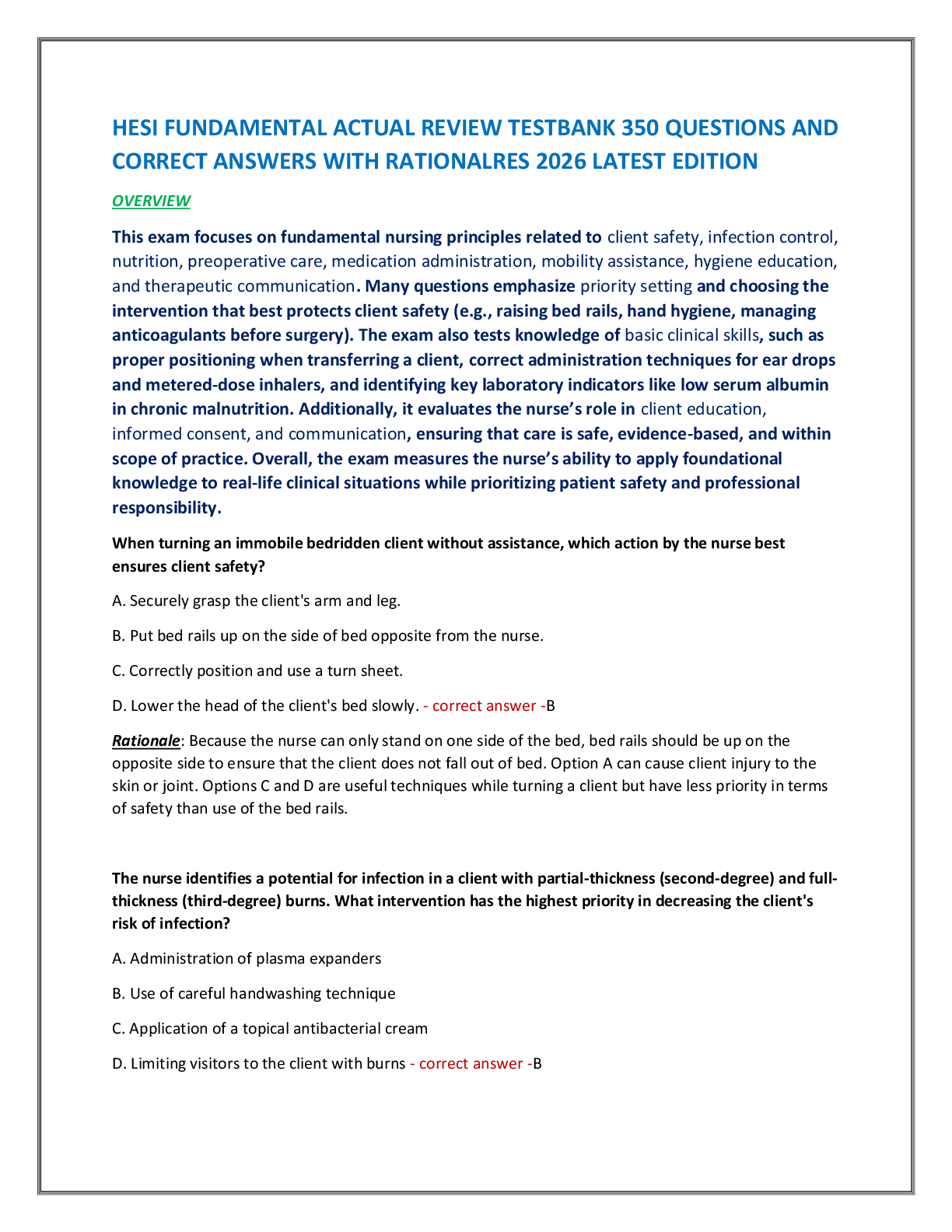 *NURSING > EXAM REVIEW > HESI FUNDAMENTAL ACTUAL REVIEW TESTBANK 350 QUESTIONS AND CORRECT ANSWERS WITH RATIONALRES 2026 LATEST EDITION