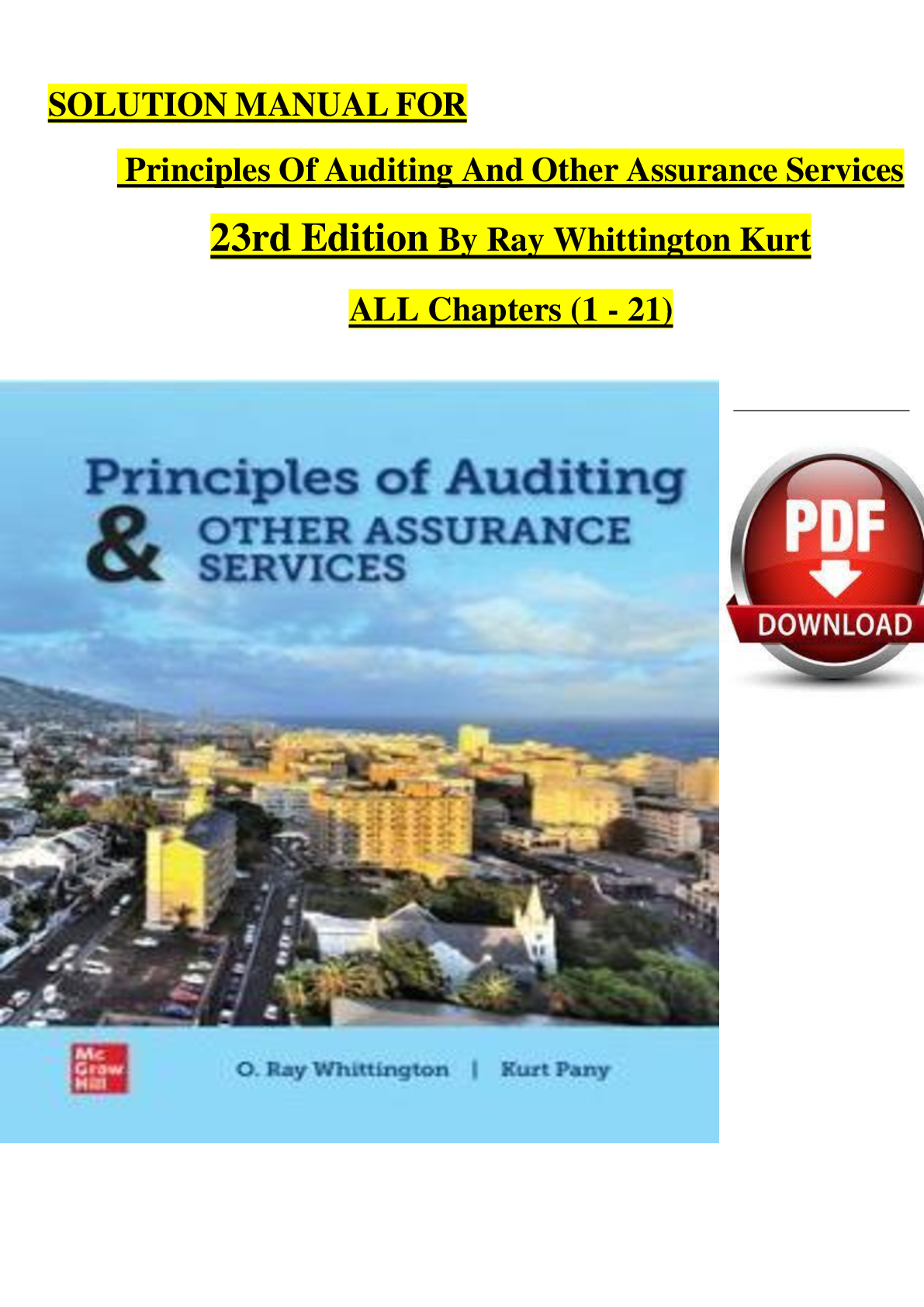 *NURSING > EXAM > SOLUTION MANUAL FOR Principles Of Auditing And Other Assurance Services 23rd Edition By Ray Whittington Kurt ALL Chapters (1 - 21)