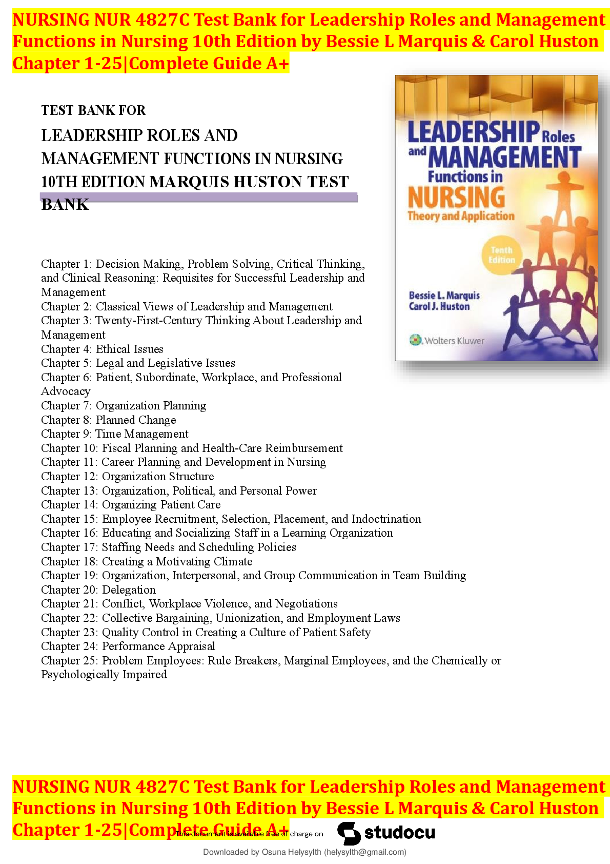 Education > TEST BANKS > Test Bank Leadership Roles & Management Function in Nursing 10th Edition
