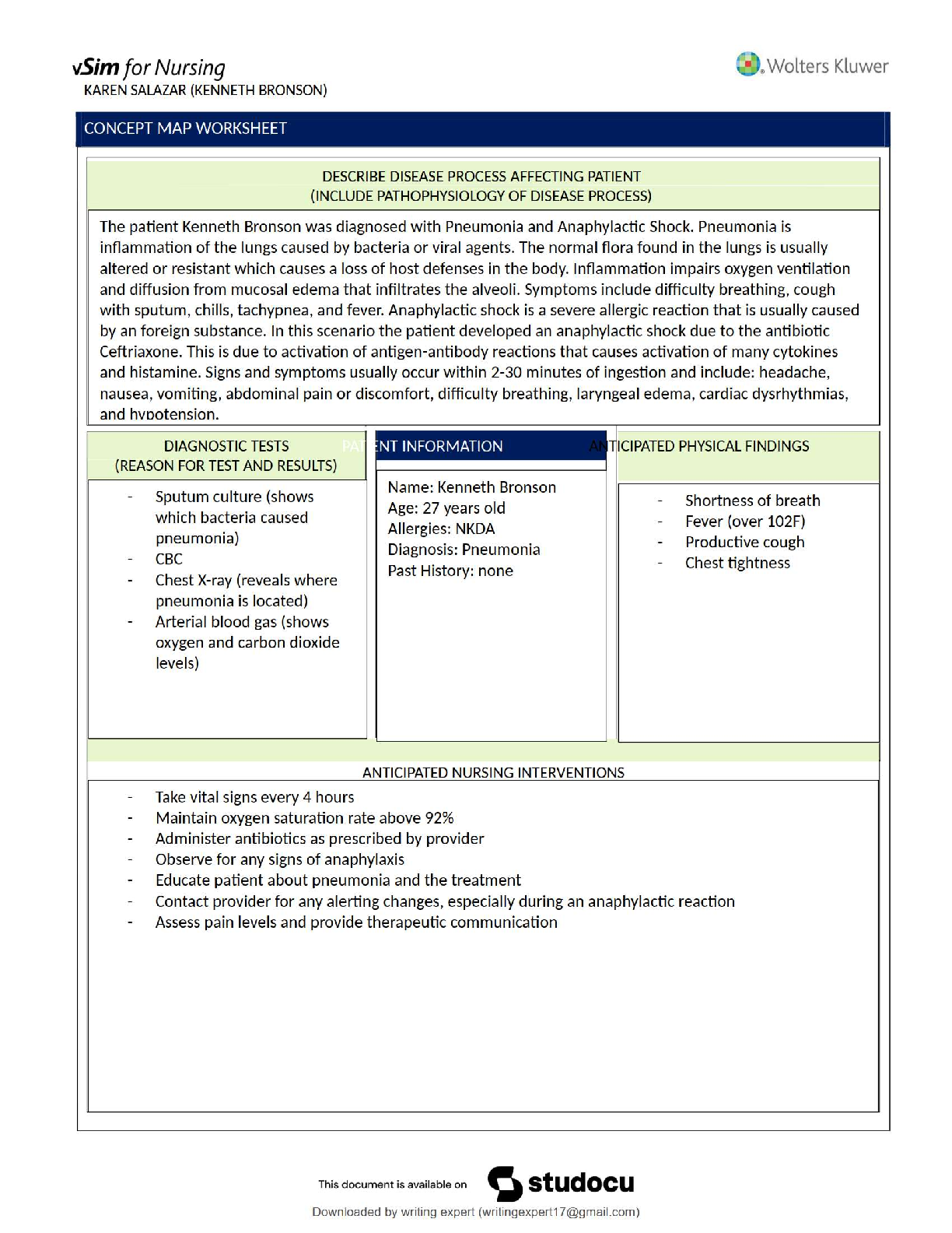 *NURSING > QUESTIONS and ANSWERS > NUR 242 Galen College – Kenneth Bronson VSIM 1: Pneumonia Lab & Concept Map | NEW 2025 Version – Score 100%