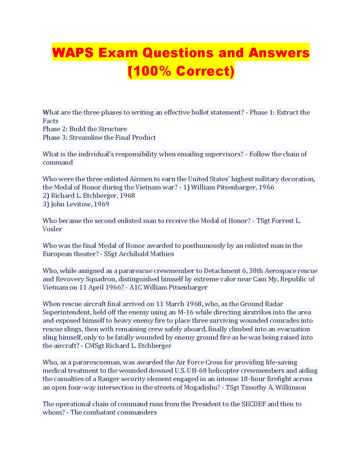 Military Studies > QUESTIONS & ANSWERS > WAPS – SSgt (Section 1F) Questions And Answers