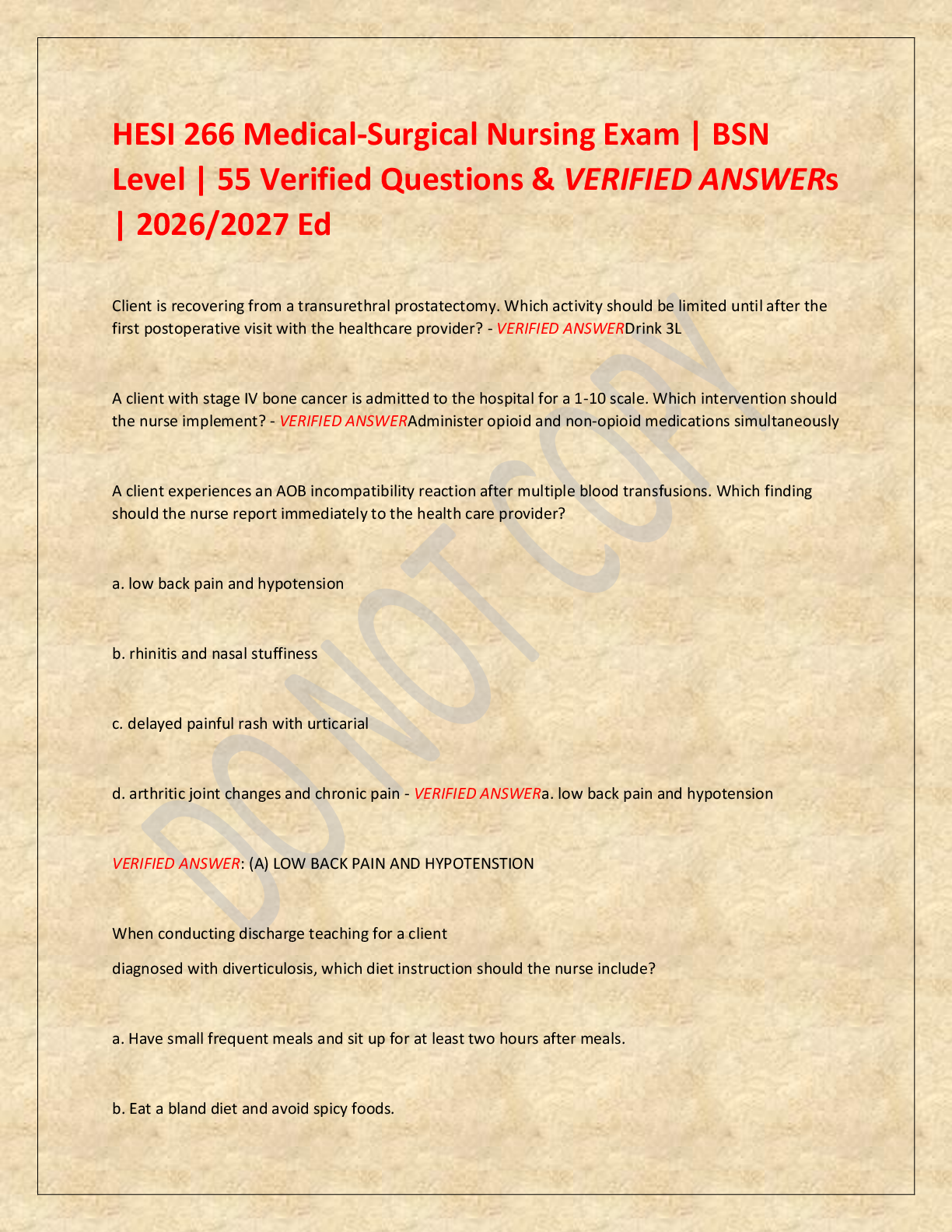 *NURSING > EXAM > HESI 266 Medical-Surgical Nursing Exam | BSN Level | 55 Verified Questions & VERIFIED ANSWERs | 2026/2027 Ed
