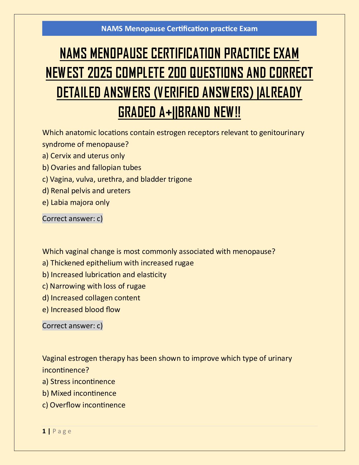 *NURSING > EXAM > NAMS MENOPAUSE CERTIFICATION PRACTICE EXAM NEWEST 2025 COMPLETE 200 QUESTIONS AND CORRECT DETAILED ANSWERS (VERIFIED ANSWERS) |ALREADY GRADED A+||BRAND NEW!!