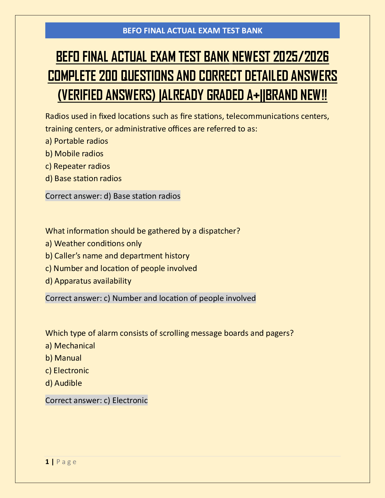 Telecommunication and Information Technology > EXAM > BEFO FINAL ACTUAL EXAM TEST BANK NEWEST 2025/2026 COMPLETE 200 QUESTIONS AND CORRECT DETAILED ANSWERS (VERIFIED ANSWERS) |ALREADY GRADED A+||BRAND NEW!!