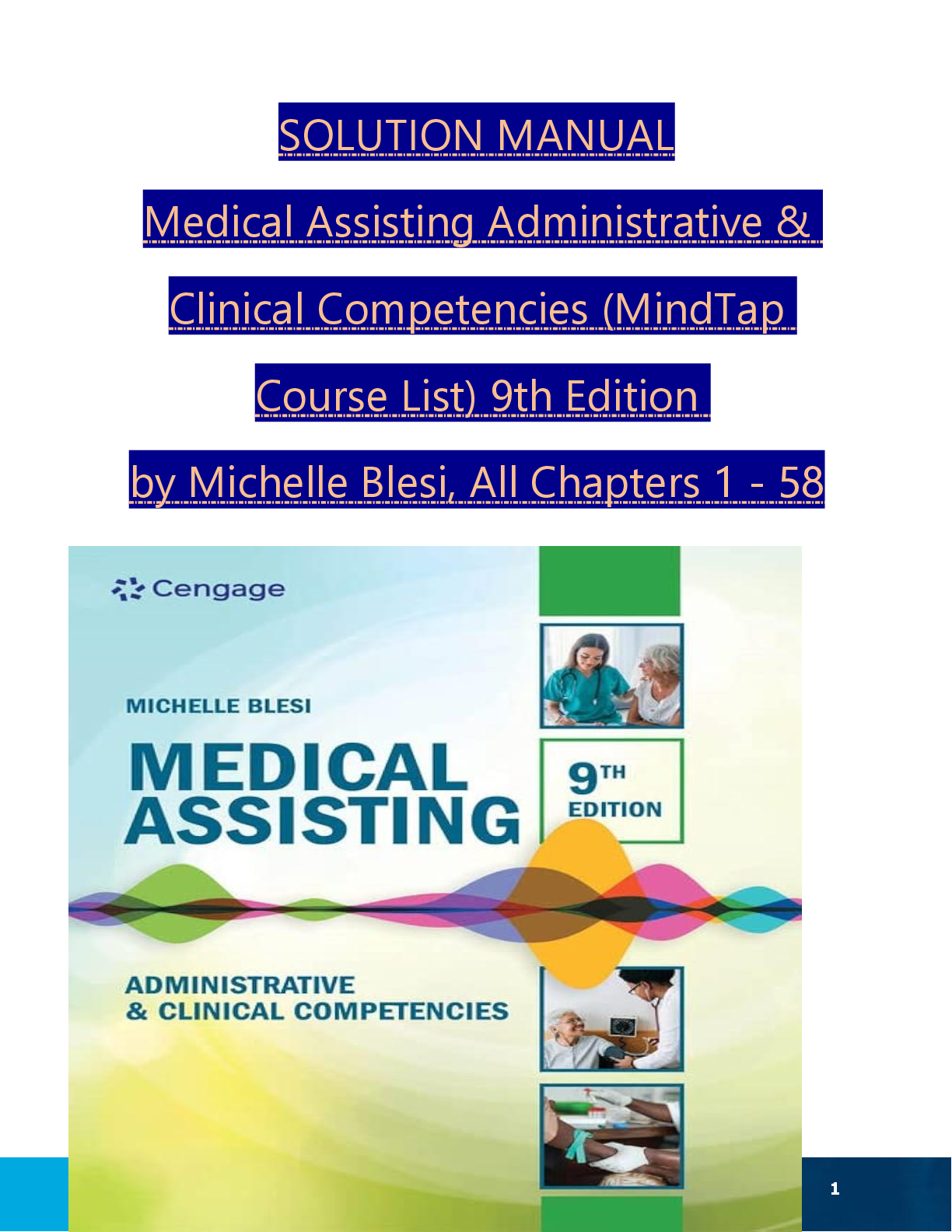 Medical Studies > SOLUTIONS MANUAL > Solution Manual for Medical Assisting: Administrative & Clinical Competencies (MindTap Course List), 9th Edition by Michelle Blesi & Virginia Ferrari | ISBN: 9780357502815 | Complete Chapters 1-58 | Verified Answers | Downloadable PDF