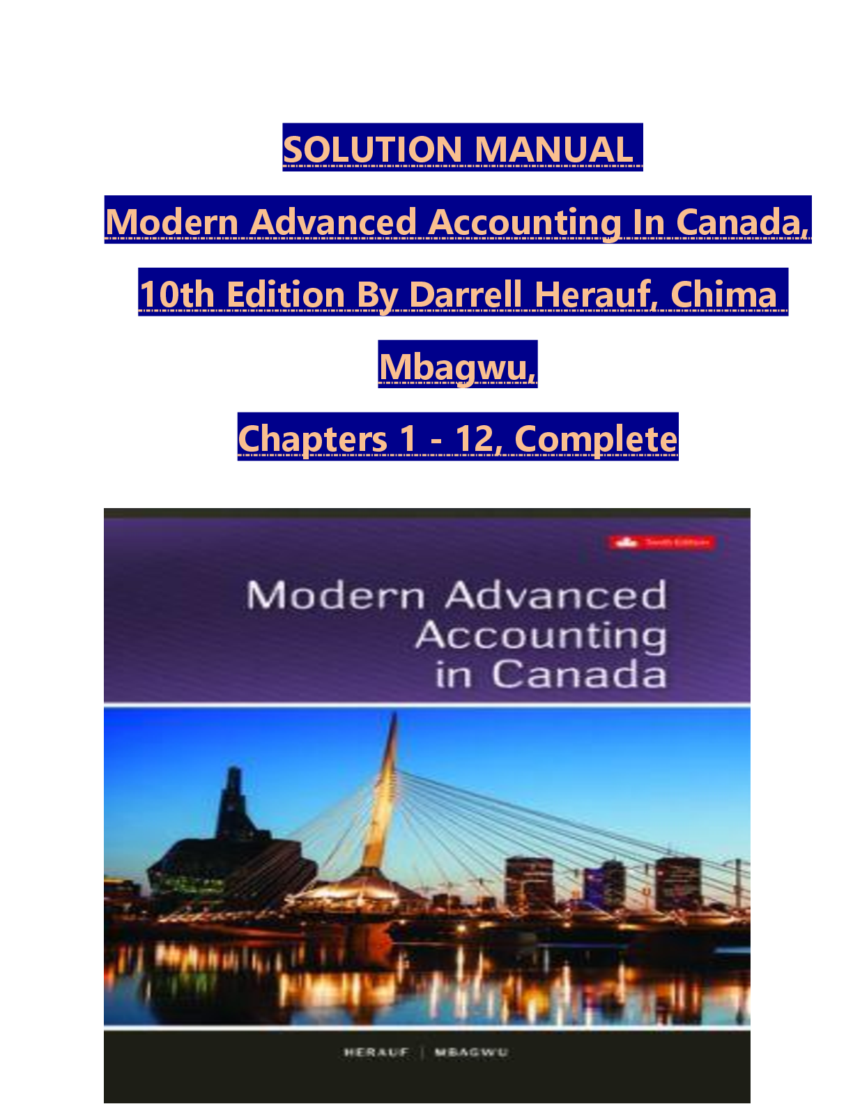 Accounting > SOLUTIONS MANUAL > Solution Manual for Modern Advanced Accounting in Canada, 10th Edition by Darrell Herauf & Chima Mbagwu | ISBN: 9781260881295 | Complete Verified Chapters 1-12 | Downloadable PDF