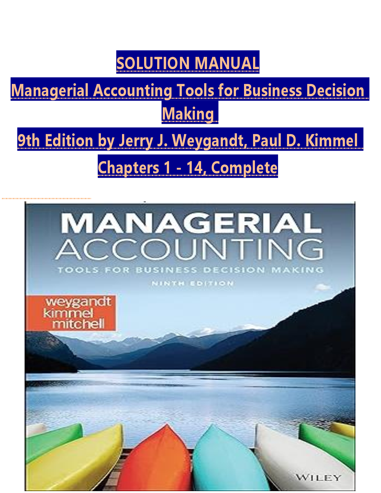 Accounting > SOLUTIONS MANUAL > Solution Manual for Managerial Accounting: Tools for Business Decision Making, 9th Edition by Jerry J. Weygandt, Paul D. Kimmel & Jill E. Mitchell | ISBN: 9781119709558 | Complete Chapters 1-14 | Step-by-Step Solutions | Downloadable PDF