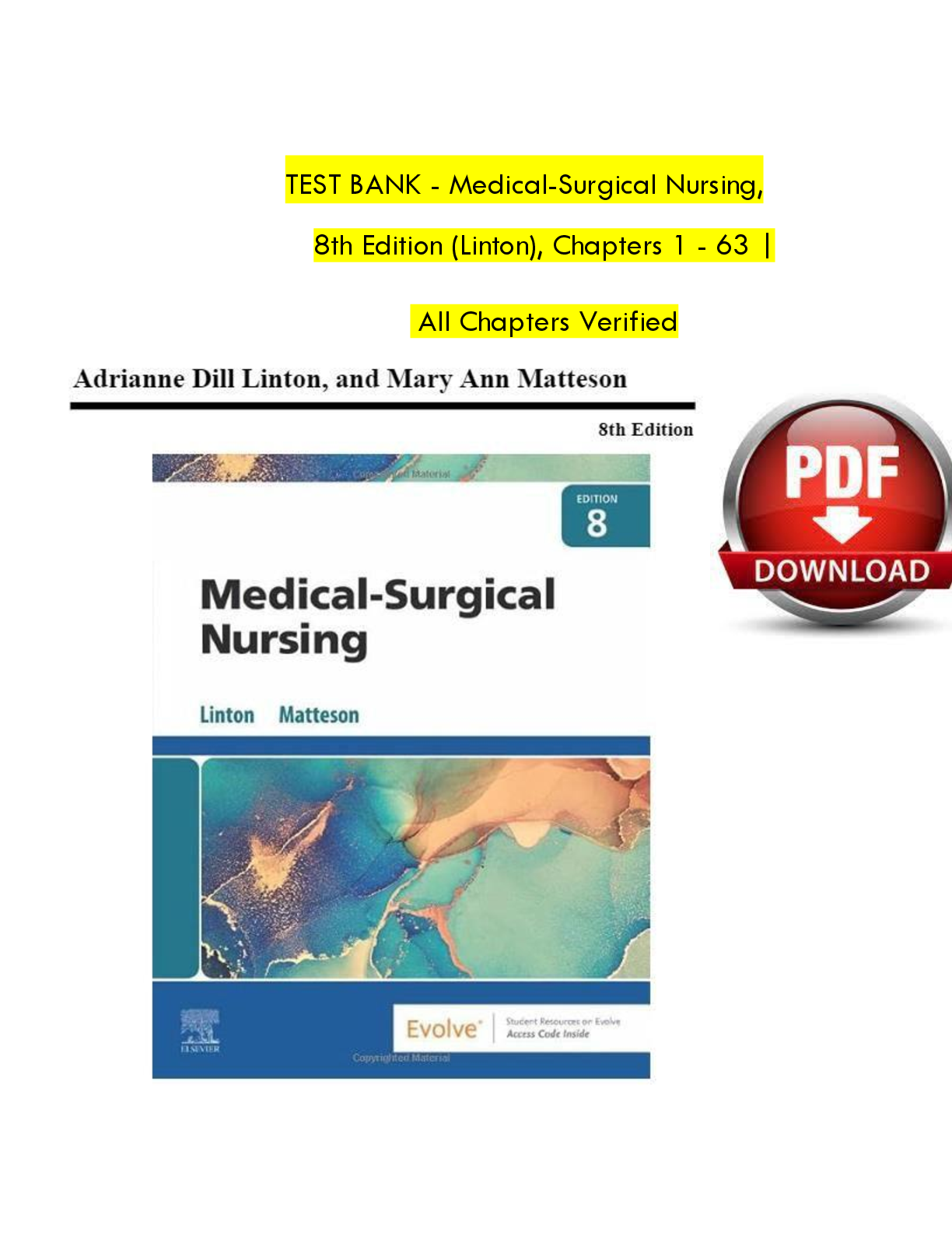 Medical Surgical Nursing > TEST BANKS > Test Bank for Medical-Surgical Nursing, 8th Edition by Adrianne Dill Linton & Mary Ann Matteson | ISBN: 9780323826716 | NGN-Style Questions | Downloadable PDF
