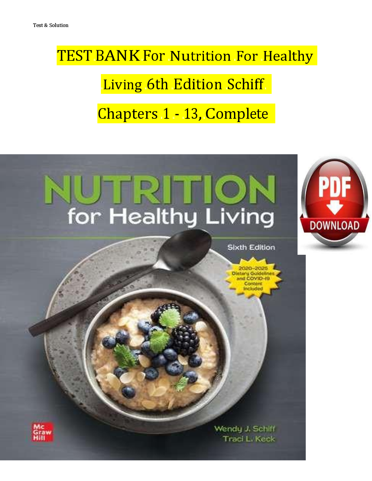 Nutrition > TEST BANKS > TEST BANK For Nutrition For Healthy Living 6th Edition Schiff Chapters 1 - 13, Complete