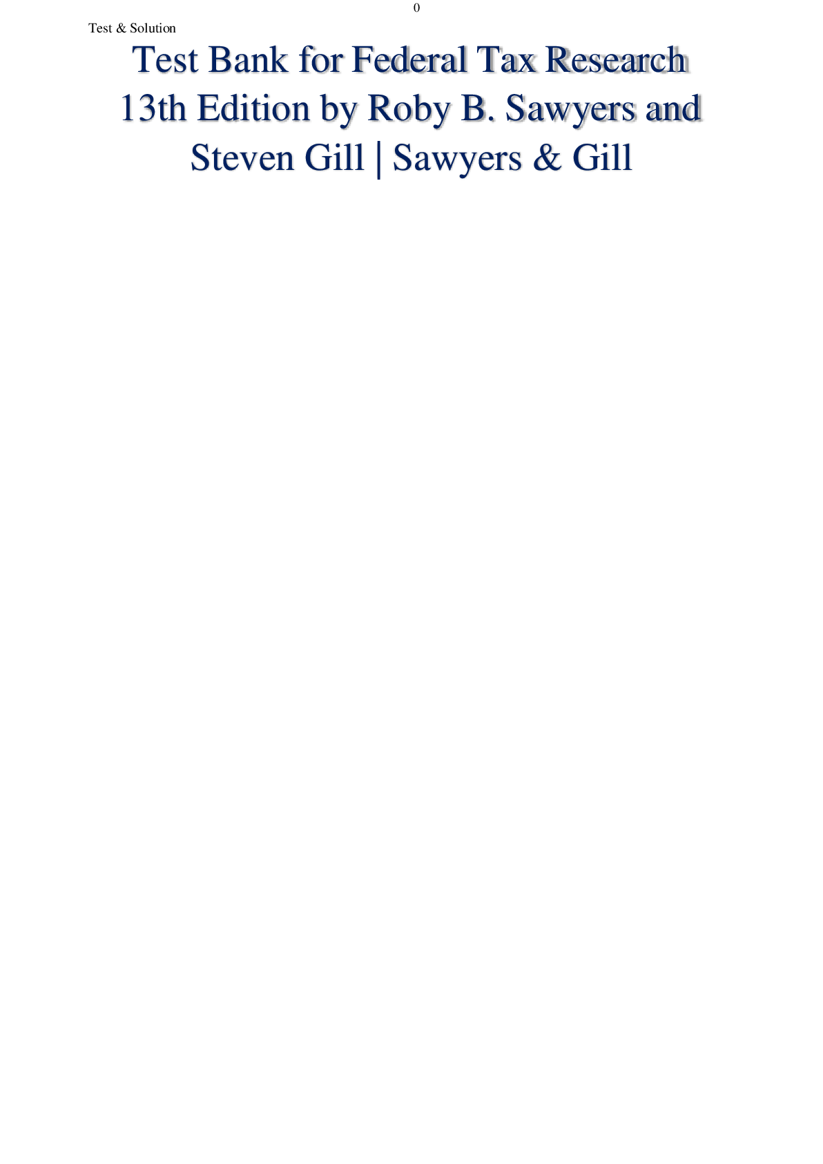 Canadian Income Taxation 2022/2023 > TEST BANKS > Test Bank for Federal Tax Research 13th Edition by Roby B. Sawyers and Steven Gill | Sawyers & Gill