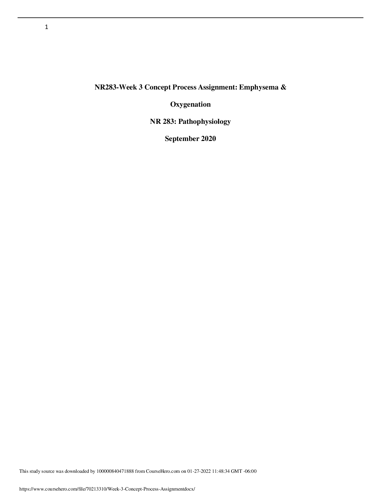 *NURSING > EXAM > NR283-Week 3 Concept Process Assignment: Emphysema & Oxygenation