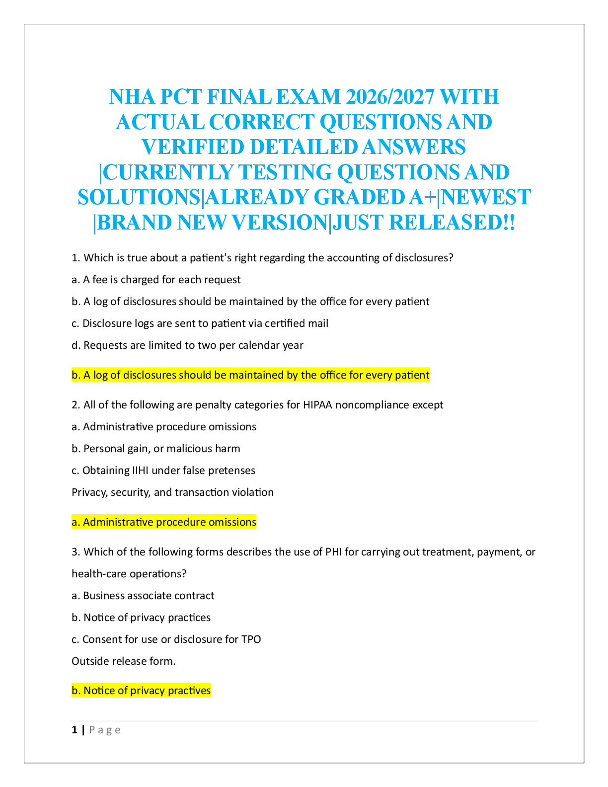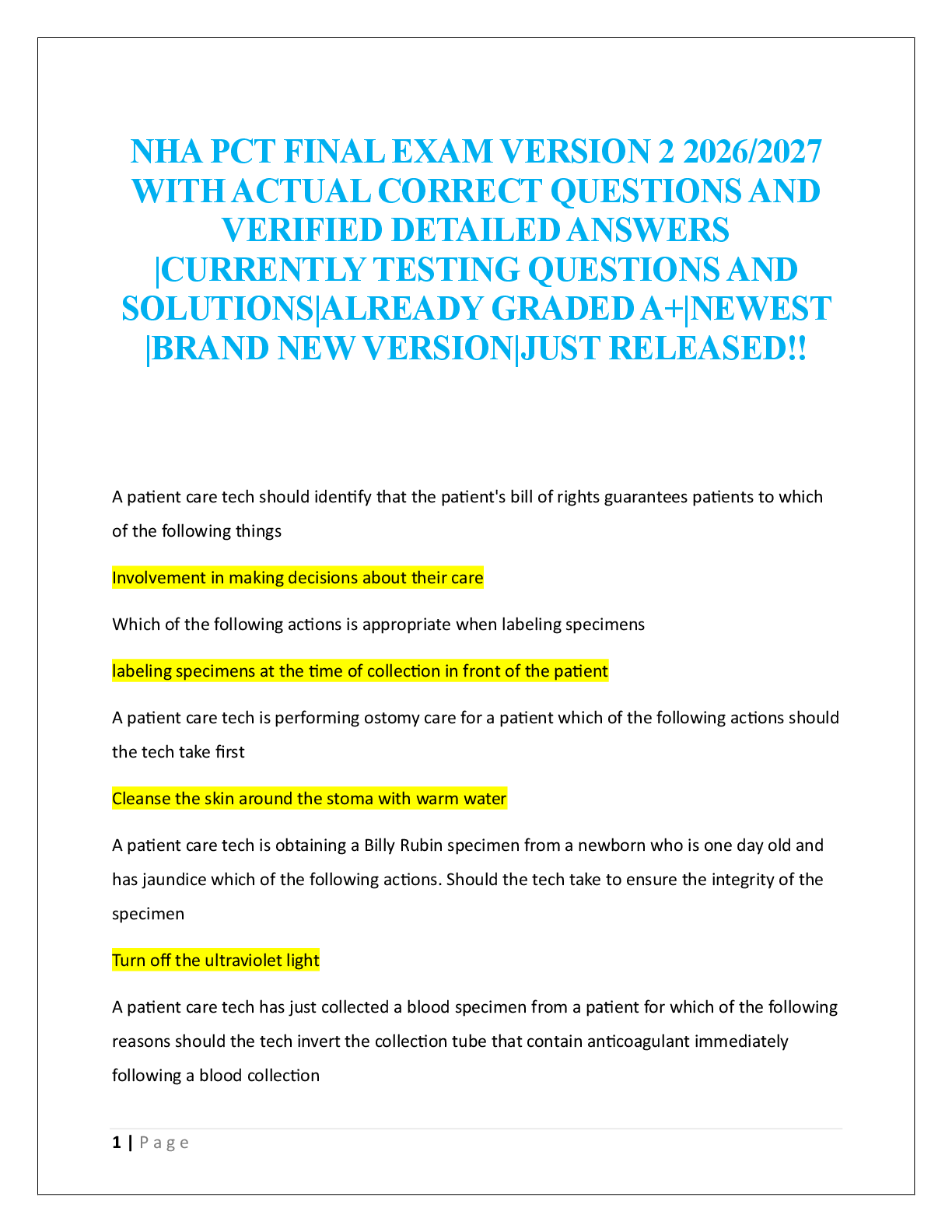 NHA phlebotomyFINAL EXAM  > NHA PCT FINAL EXAM 2026/2027