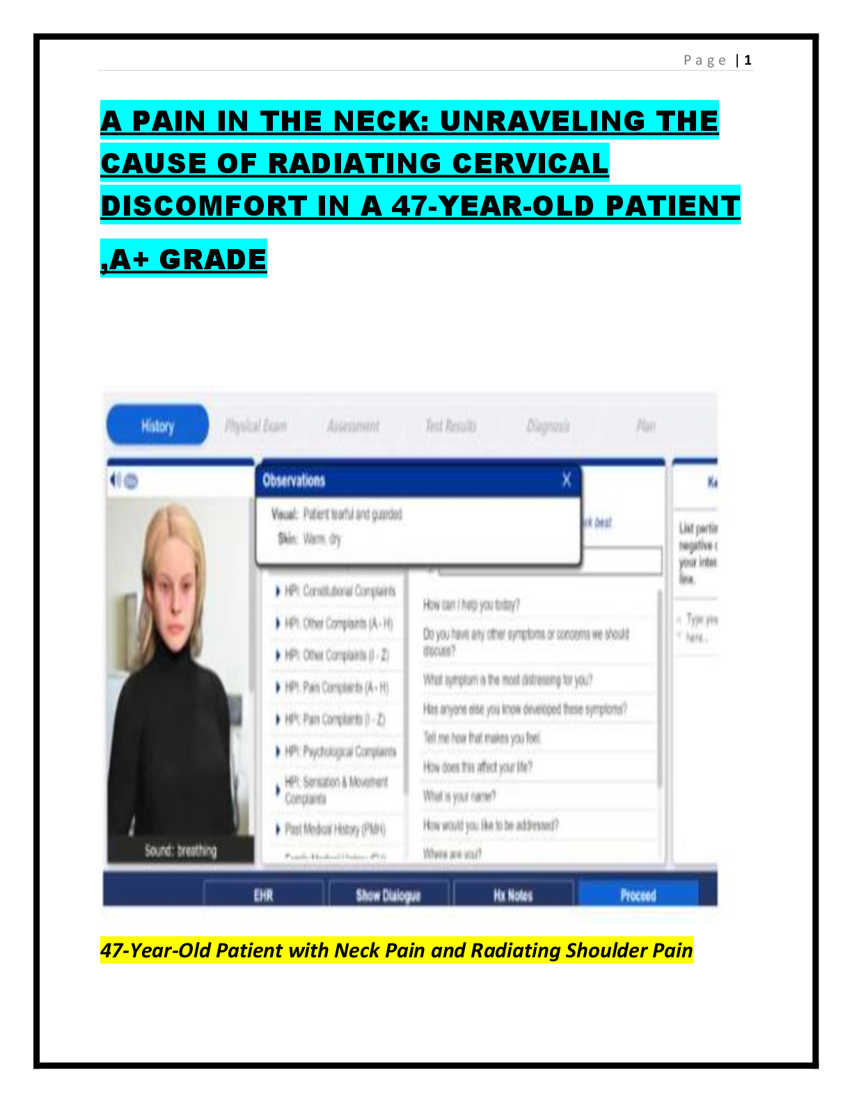 *NURSING > iHuman Case Studies > A PAIN IN THE NECK: UNRAVELING THE CAUSE OF RADIATING CERVICAL DISCOMFORT IN A 47-YEAR-OLD PATIENT ,A+ GRADE