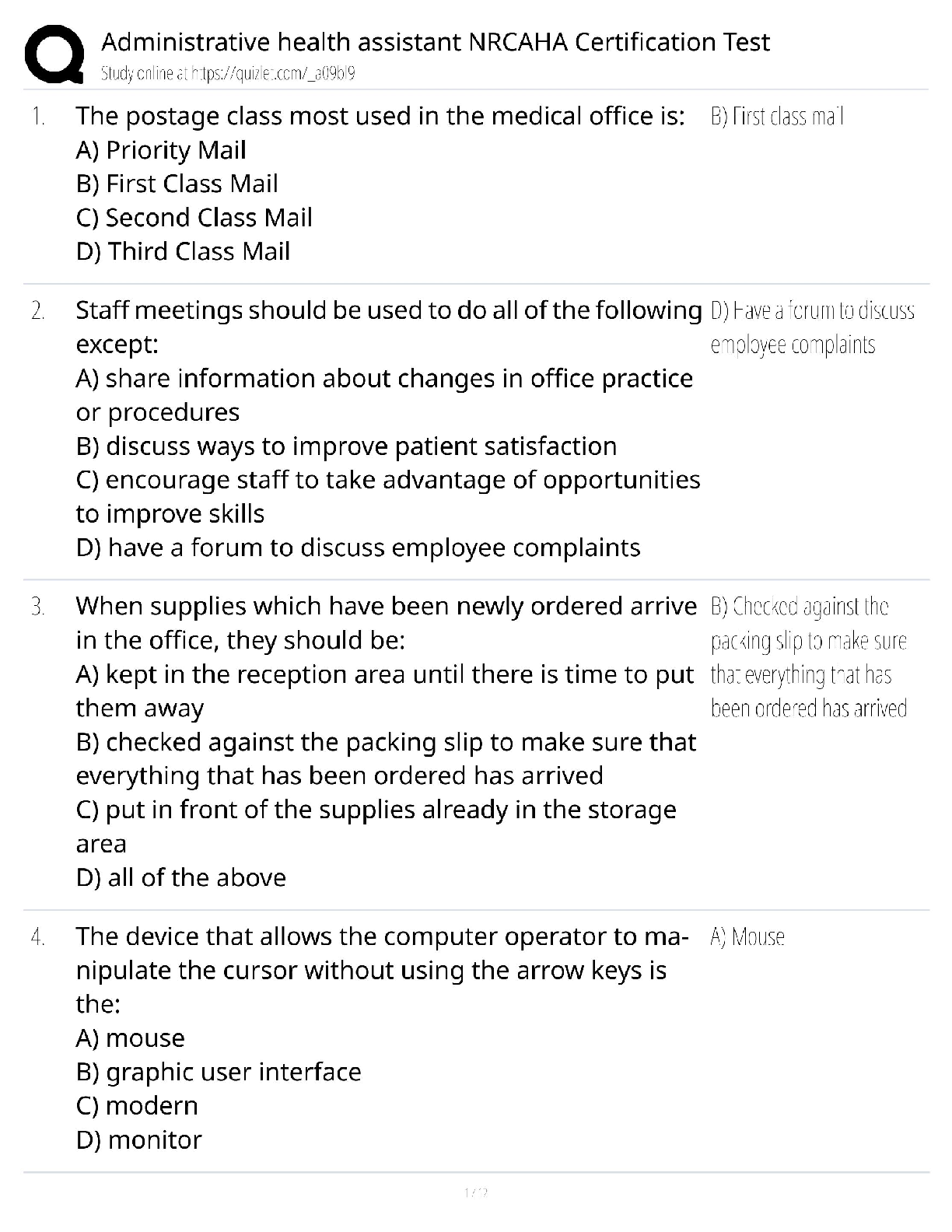 Health Care > QUESTIONS & ANSWERS > Administrative Health Assistant / NRCAHA Certification Test / Exam Prep 2025 / Score 100% Study Guide & Test Bank