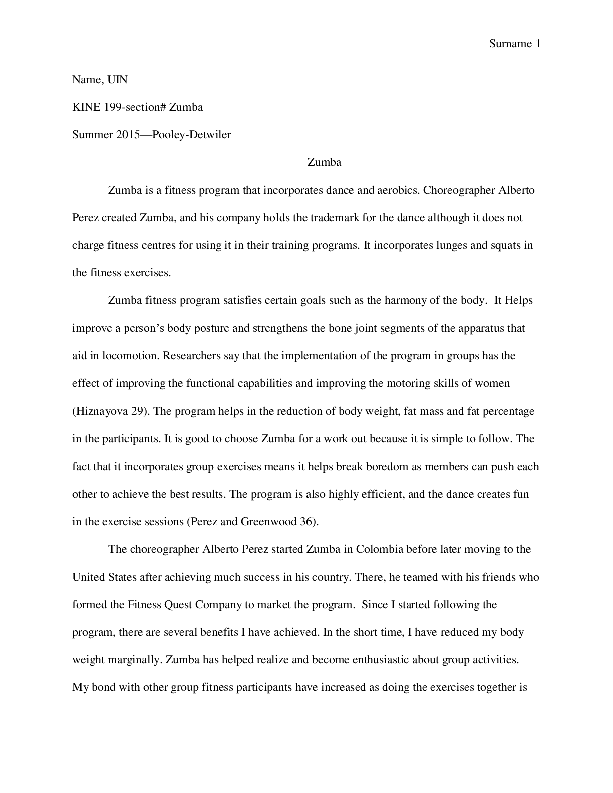 What is Zumba? What affects does Zumba have on the body? Why chose Zumba for a workout? Where did Zumba come from? How have you felt you have benefited from Zumba? If you have not why do you think ... this is? Looking at the video of yourself and using the prompt sheets what do you think you need to work on? Are your arms and legs strong and meeting the positions? Are you putting in the effort that needs to be put in? Analyze your performance [Show More]