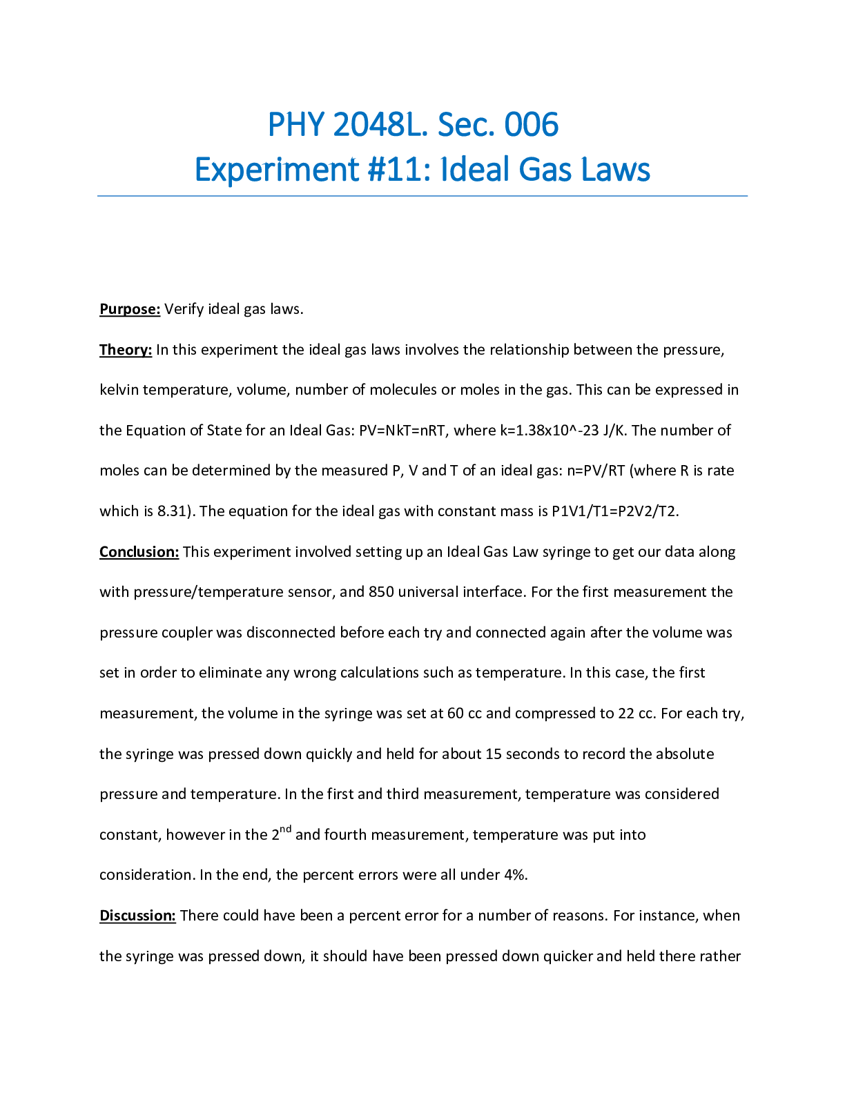 Physics > Lab Report > Florida Atlantic University - PHY 2048LExperiment 6 Lab Report (All)