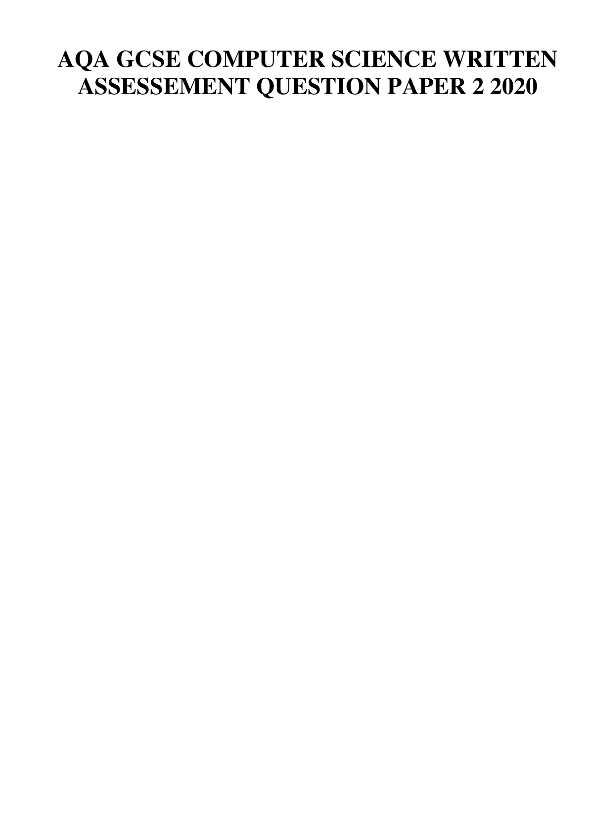 AQA A-level COMPUTER SCIENCE Paper 2 June 2018