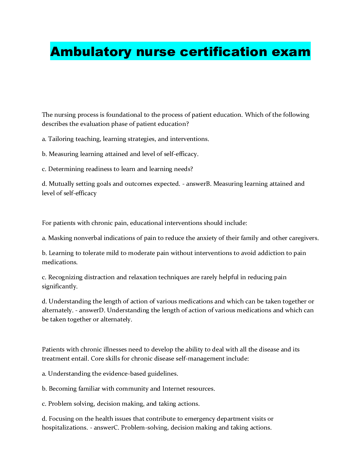 AMBULATORY NURSE CERTIFICATION COMPLETE QUESTIONS AND ANSWERS GRADED A+...