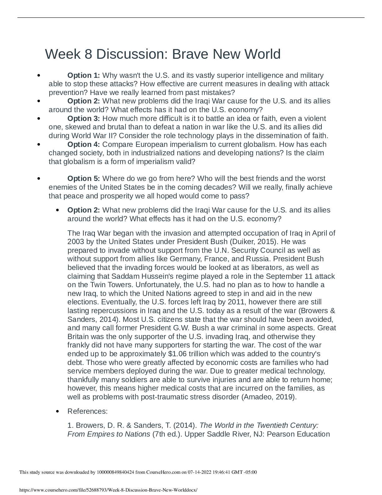 History > PROJECT FINAL > HIST 410N Week 8 Course Project: Narrated Presentation | Download To Score A+ (All)