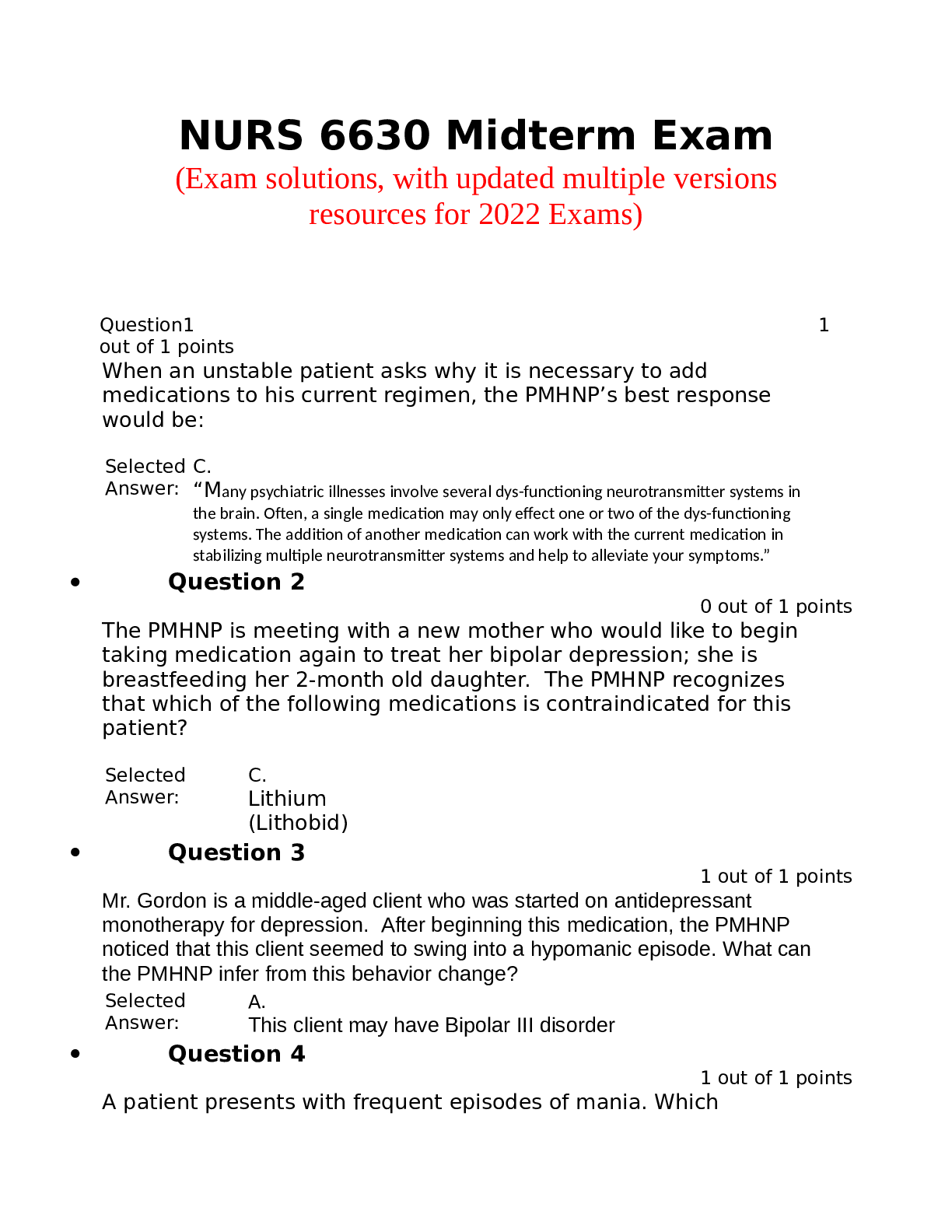 NURS 6630 Midterm Exam (Exam solutions, with updated multiple versions resources for 2022 Exams) ... [Show More]