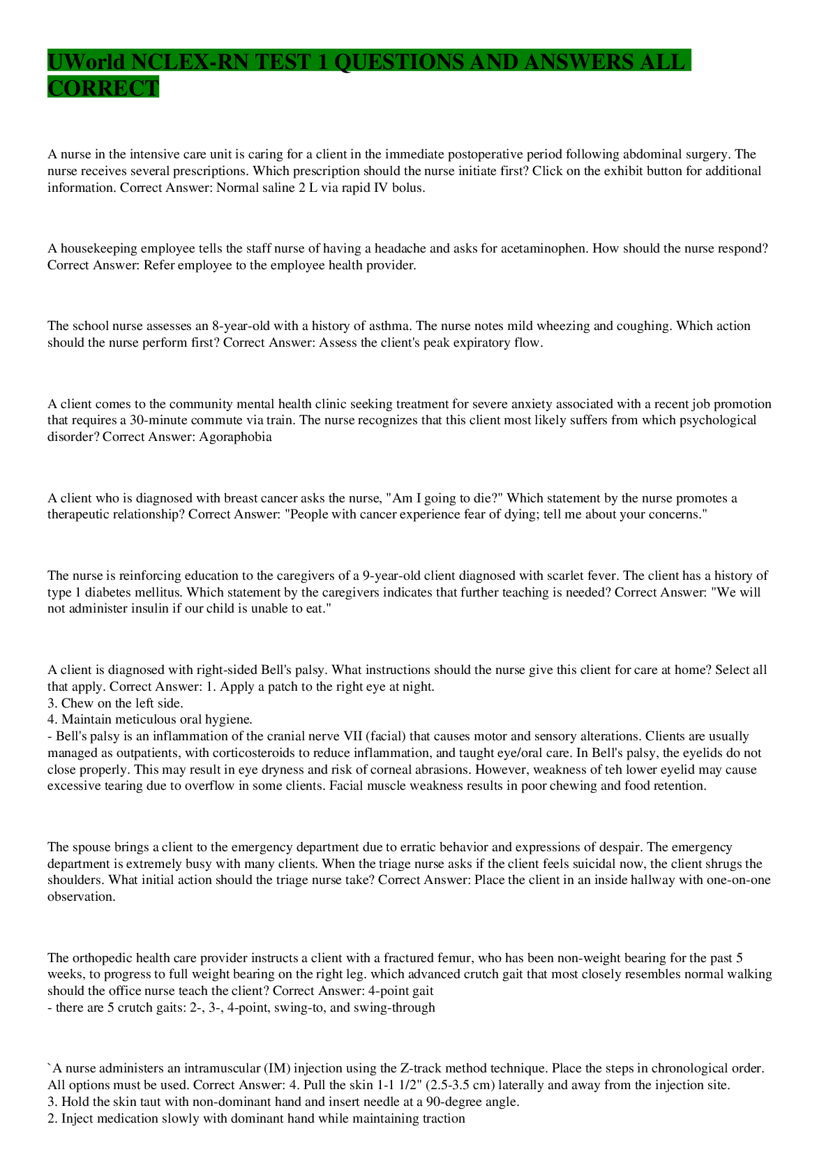 uworld NCLEX Questions AND ANSWERS