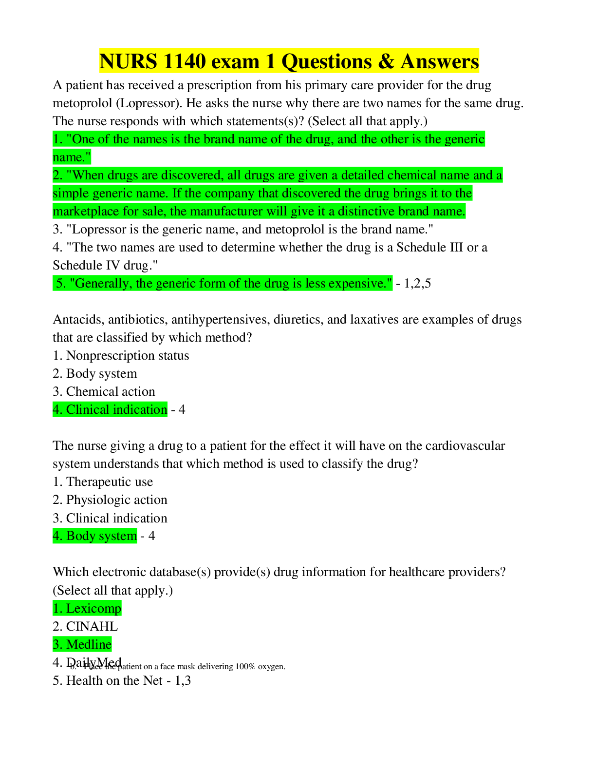 NURS 1140 exam 2 Questions & Answers -Which antihistamine drugs are considered as most sedative? Select all that apply. - Clemastine (Tavist), doxylamine (Unisom), and cyproheptadine (Periactin) are antihistamine drugs