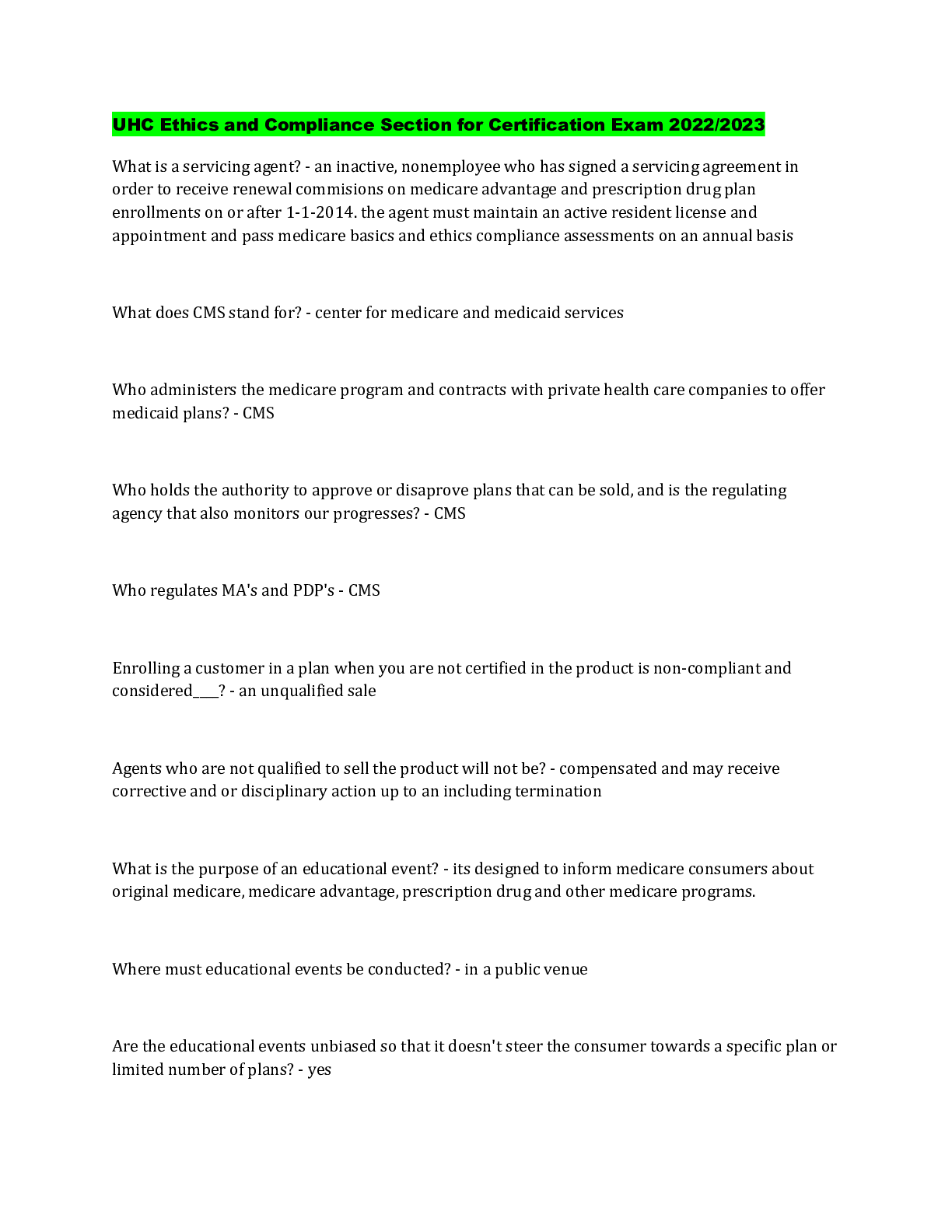 Sterile Processing - Final Exam, IAHCSMM CENTRAL SUPPLY STUDY GUIDE, Sterile Processing Study Material for Certification Exam Why is it important to evenly distribute large instruments in a set? ... A. The set is difficult to carry if the weight is unevenly distributed B. Extra condensation will make the set more difficult to dry C. It is easier for the end user to sort the instrument D. The overall weight of the set is affected ✔✔B Which of the following BEST describes the overall role of the CS/SPD A. To provide dependable service to enhance patient care B. To provide sterilization services on a rigid schedule C. To provide delivery of supplies D. To provide direct patient care ✔✔A Which of the following government agencies regulates environmental disinfectants? A. OSHA B. FDA C. EPA D. CDC ✔✔C Medical-grade kraft paper CANNOT be used with which of the following sterilization processes ? A. Steam B. Ozone C. Ethylene oxide D. Low temperature gas plasma ✔✔DDuring cycle counts, items that have a large dollar value but are NOT used frequently are classified as A. A B. B C. C D. D ✔✔A Anatomy is the science that deals with the________ of the body parts A. Function B. Structure C. Physiology D. Sociology ✔✔B Which of the following transports molecules within the cell A. Cilia B. Flagella C. Nucleus D. Cytoplasm ✔✔D Which of the following sets would be considered high risk for special prion processing? A. Open heart set B. Laparotomy set C. Abdominal set D. Craniotomy set ✔✔D Which of the following organs produces bile? A. Gallbladder B. Pancreas C. StomachD. Liver ✔✔D Microorganisms are measured in A. Inches B. Microns C. Millimeters D. Centimeters ✔✔B With respect to rigid sterilization container testing, which term defines the sterilizer's ability to sterilize under actual conditions? A. Biological testing B. Small load testing C. Chemical testing D. Maximum load testing ✔✔D What is the ideal human body temperature? A. 96.8° F B. 97.8° F C. 98.6° F D. 99.0° F ✔✔C Which of the following is TRUE of capsules A. It is less difficult to kill than vegatitive bacteria B. It is more difficult to kill than a spore C. It is resistant to heat and chemicals D. It is easily killed by antibiotics ✔✔C Pulmonary capillaries are found in which system? A. Circulatory B. RespiratoryC. Nervous D. Digestive ✔✔B Ethics is the practice of A. Discussing patient issues with friends B. Not reconizing cultural beliefs C. Dealing with what is bad D. Doing the right thing ✔✔D A microorganism that is resting and had a hard shell like outer covering is called a A. Prion B. Spore C. Flagella D. Capsule ✔✔B Spongiform encephalopathy is caused by which of the following A. Prions B. Spores C. Viruses D. Pyrogens ✔✔A Nails,tissues, and money are examples of A. Fomites B. Vehicles C. Vectors D. Flagellae ✔✔A Cholera is transmitted by A. Droplets B. VectorsC. Direct contact D Contaminated food and water ✔✔D In the FINAL step of hand washing, the fingers should be rinsed with the fingertips A. UP B. Left C. Right D. Down ✔✔A Water less hand antiseptics contain what percentage concentration of alcohol make the MOST effective A. 25% to 49% B. 60% to 95% C. 50% to 100% D. 75% to 100% ✔✔B All of the following play a role in how bones support other body systems EXCEPT A. Storage of minerals B. Growth of blood cells C. Distribution of hormones D. Protection of internal organs ✔✔C OSHA requires that containers of potentially infectious materials be A. Leakproof B. Rubber C. Metal D. Glass ✔✔A Round or spherical bacterial are called A. CocciB. Bacilli C. Spiral D. Flagellae ✔✔A The removal of contamination from an item to the extent necessary for further processing is called A. Snorting B. Sterilizing C. Cleaning D. Disinfection ✔✔C Which of the following should be cleaned daily A. Floors and work surfaces B. Walls and vents C. Floor drains D. Ceilings ✔✔A Which of the following is a TRUE statement regarding the use of personal protective equipment (PPE) in the decontamination area A. Its use is optional B. Vinyl gloves are all that is needed manual cleaning C. Failure to wear PPE can result in disciplinary action D. If the temperature in the room is too warm, gowns do not need to be worn ✔✔C Before the medical device is cleaned and processed A. The manufacturer's instructions must be obtained B. Material compatibility testing must be preformed C. It must be approved by the electrician D. It must be checked for function ✔✔A The MINIMUM time needed for effective handwashing isA. 5 seconds B. 10 seconds C. 15 seconds D. 20 seconds ✔✔C Which of the following IS NOT s consideration when selecting a detergent? A. Quality of water B. Amount of soil C. Water temperature D. Cost of detergent ✔✔D The relative acidity or alkalinity of a solution is referred to as its A. TMJ B. pH C. Fx D. B12 ✔✔B Clostridium botulinum is harbored in (the) A. Soil B. Air C. Water D. Body ✔✔A A solution with a pH of 3 is considered A. Concentrated B. Neutral C. Alkaline D. Acidic ✔✔D A solution with a pH of 13 is consideredA. Acidic B. Neutral C. Alkaline D. Concentrated ✔✔C Which of the following are major non living reservois of infectious diseases A. Soil and water B. Oil and water C. Gas and oil D. Soil and gas ✔✔A Alkaline detergents are BEST for mechanical washers because of A. Extended dry cycles B. A lack of friction in washing C. The need to break down protein D. The high water temperature used ✔✔B Which of the following is used to remove severe stains on stainless steel instruments A. Proteolytic enzyme detergent B. Lipolytic enzyme detergent C. Organic alkaline detergent D. Organic acid detergent ✔✔D One method of preventing biofilm formation on instruments is to A. Rinse the instruments with distilled water and dry them out B. Soak the instruments overnight in an enzyme solution C. Use a chlorine based