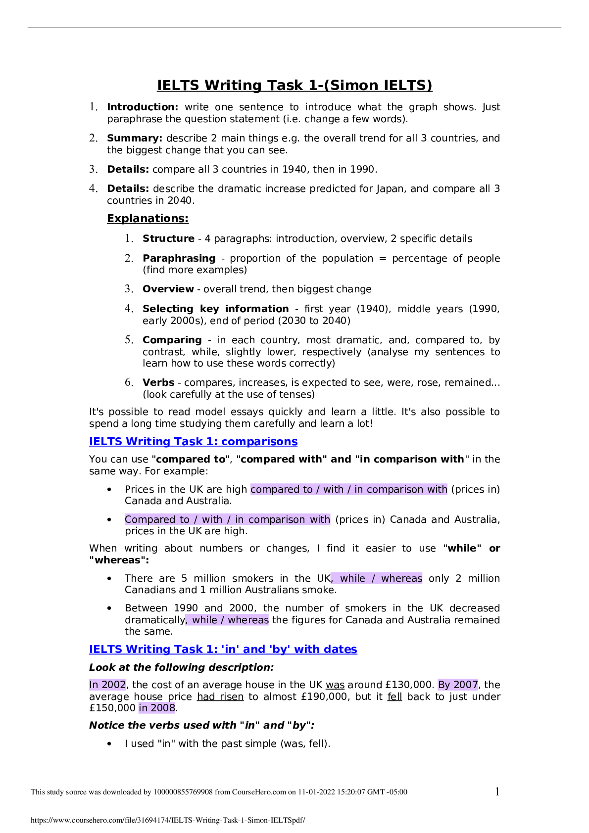 IELTS Sample Essays 9.0 This book provides a collection of model essays written by Dominic Cole – an excellent IELTS teachers. These essays are scored around 9, so you can learn how to write a cog ... ent and laconic essay from him. Before you go, let’s take some time to brainstorm for the following questions: 1. In the past lectures were the traditional method of teaching large numbers of students. Nowadays new technology is increasingly being used to teach students. Do the advantages of this new approach outweigh the disadvantages? 2. Science and technology have improved the standards of living in all over the world. Some people claim that the role of the arts has become insignificant. To what extent do you agree or disagree with this opinion? 3. Some people say that parents should decide on what kind of medical care their children should receive, while others believe that this is the state’s responsibility Discuss both views and give your opinion. 4. Differences between countries become less evident each year. Nowadays, all over the world people share the same fashions, advertising, brands, eating habits and TV channels. Do the advantages outweigh the disadvantages of this? 5. Some people think that only staff who worked in a company for a long time should be promoted to a higher position. To what extent do you agree or disagree? 6. Some people believe that exams are an inappropriate way of measuring students’ performance and should be replaced by continuous assessment. To what extent do you agree or disagree? Model essay Band 9 | Dominic Cole 3 7. In recent years, farming practice has changed to include methods such as factory farming and the use of technology to improve crops. Some people believe these developments are necessary, while others regard them as dangerous and advocate a return to more traditional farming methods. Discuss both points of view and give your own opinion. 8. Should museums and art galleries be free of charge for the general public, or should a charge, even a voluntary charge, be levied for admittance? Discuss both views and give your opinion. 9. The best way to solve the world’s environmental problems is to increase the cost of fuel. To what extent do you agree or disagree? 10. Some people prefer to live in a house, while others think that there are more advantages living in an apartment. Are there more advantages than disadvantages to living in a house rather than in an apartment? 11. Many people want their country to host an international sporting event. Others believe that international sporting events bring more problems than benefits. Discuss both views and state your opinion. 12. Space exploration requires vast sums of money. Is the amount of money spent on space research justifiable? Could the money be better spent? 13. Unemployment is one of the most serious problems facing developed nations today. What are the advantages and/or disadvantages of reducing the working week to thirty five hours? 14. It is sometimes said that a high salary is the most important factor in choosing a job. To what extent do you agree or disagree? Model essay Band 9 | Dominic Cole 4 15. Subjects such as Art, Sport and Music are being dropped from the school curriculum for subjects such as Information Technology. Many people children suffer as a result of these changes. To what extent would you support or reject the idea of moving these subjects from school curriculum? ESSAY TOPICS: In the past lectures were the traditional method of teaching large numbers of students. Nowadays new technology is increasingly being used to teach students. Do the advantages of this new approach outweigh the disadvantages? Science and technology have improved the standards of living in all over the world. Some people claim that the role of the arts has become insignificant. To what extent do you agree or disagree with this opinion? Some people say that parents should decide on what kind of medical care their children should receive, while others believe that this is the state’s responsibility Discuss both views and give your opinion Differences between countries become less evident each year. Nowadays, all over the world people share the same fashions, advertising, brands, eating habits and TV channels. Do the advantages outweigh the disadvantages of this? Some people think that only staff who worked in a company for a long time should be promoted to a higher position. To what extent do you agree or disagree? Some people believe that exams are an inappropriate way of measuring students’ performance and should be replaced by continuous assessment. To what extent do you agree or disagree? In recent years, farming practice has changed to include methods such as factory farming and the use of technology to improve crops. Some people believe these developments are necessary, while others regard them as dangerous and advocate a return to more traditional farming methods. Discuss both points of view and give your own opinion. Should museums and art galleries be free of charge for the general public, or should a charge, even a voluntary charge, be levied for admittance? Discuss both views and give your opinion. The best way to solve the world’s environmental problems is to increase the cost of fuel. To what extent do you agree or disagree? Some people prefer to live in a house, while others think that there are more advantages living in an apartment. Are there more advantages than disadvantages to living in a house rather than in an apartment? Many people want their country to host an international sporting event. Others believe that international sporting events bring more problems than benefits. Discuss both views and state your opinion. Space exploration requires vast sums of money. Is the amount of money spent on space research justifiable? Could the money be better spent? Unemployment is one of the most serious problems facing developed nations today. What are the advantages and/or d