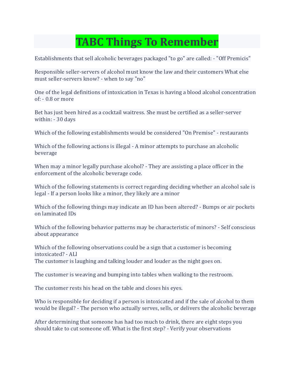 TABC STUDY GUIDE EXAM 2022/2023 ... [Show More]