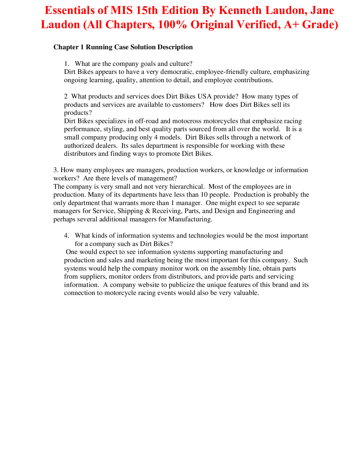 Solutions Manual With Test Bank For Essentials of MIS 15th Edition By Kenneth Laudon, Jane Laudon (All Chapters, 100% Original Verified, A+ Grade) Solutions Manual With Test Bank For Essentials of...